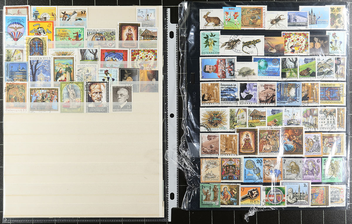 Collection of used Austria, 1858-2014, containing roughly 1,000 stamps in several stockpages. The collection generally ranges from Scott #9/2460, with the vast majority of stamps ranging from the 1950's onwards, noting singles, sets, partial sets, a few souvenir sheets and "back of the book" material. Owner's 2018 Scott catalogue value for the lot totals US$1,628.00, leaving better finds for the dedicated collector. Postmark interest includes cds types, noting a few "socked on the nose" town cancels. A good lot for the used collector, overall fine to very fine. Estimate =