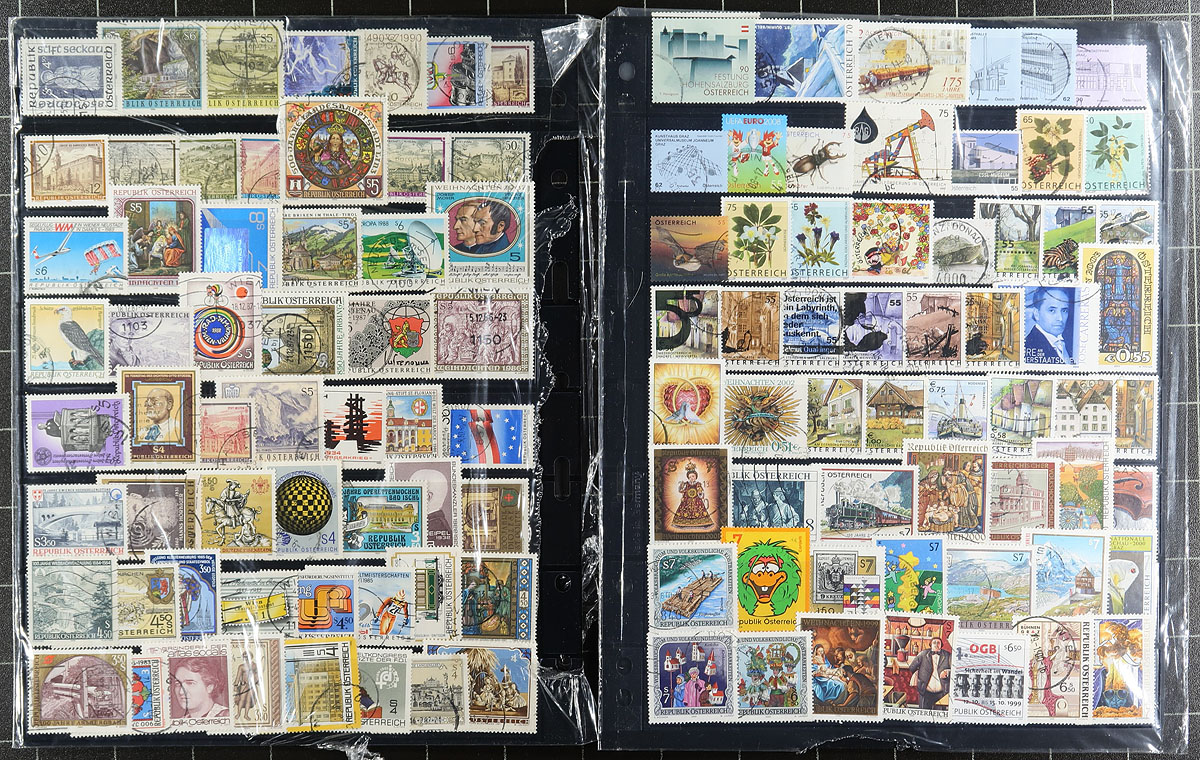 Collection of used Austria, 1858-2014, containing roughly 1,000 stamps in several stockpages. The collection generally ranges from Scott #9/2460, with the vast majority of stamps ranging from the 1950's onwards, noting singles, sets, partial sets, a few souvenir sheets and "back of the book" material. Owner's 2018 Scott catalogue value for the lot totals US$1,628.00, leaving better finds for the dedicated collector. Postmark interest includes cds types, noting a few "socked on the nose" town cancels. A good lot for the used collector, overall fine to very fine. Estimate =