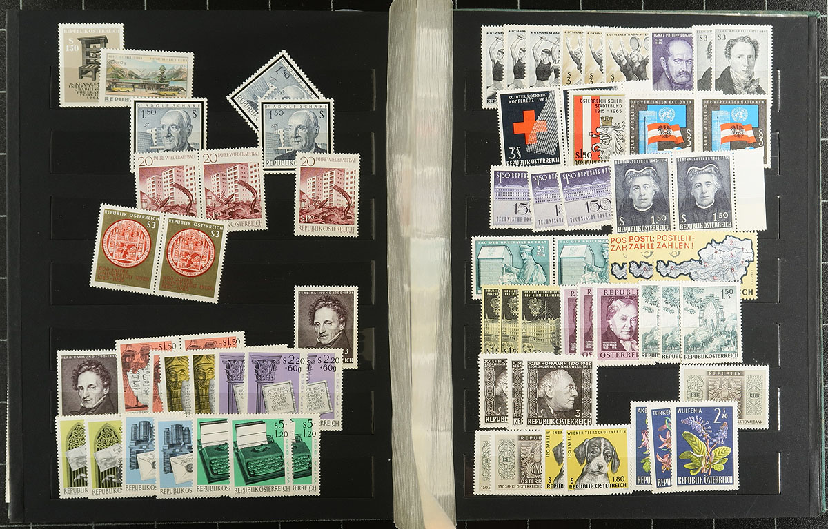 Accumulation of primarily never hinged Austria, 1900's-1990's, containing several hundreds of stamps in a variety of formats including a couple of stockbooks, album and stock pages, glassines, etc. A spot check indicated material primarily ranging from Scott #91/1608, including a few airmails, souvenir sheets, and more, with a few items cataloguing $10 and up. Owner's 2018 Scott value for the lot totals US$937.00. A nice lot for all collectors. Estimate =