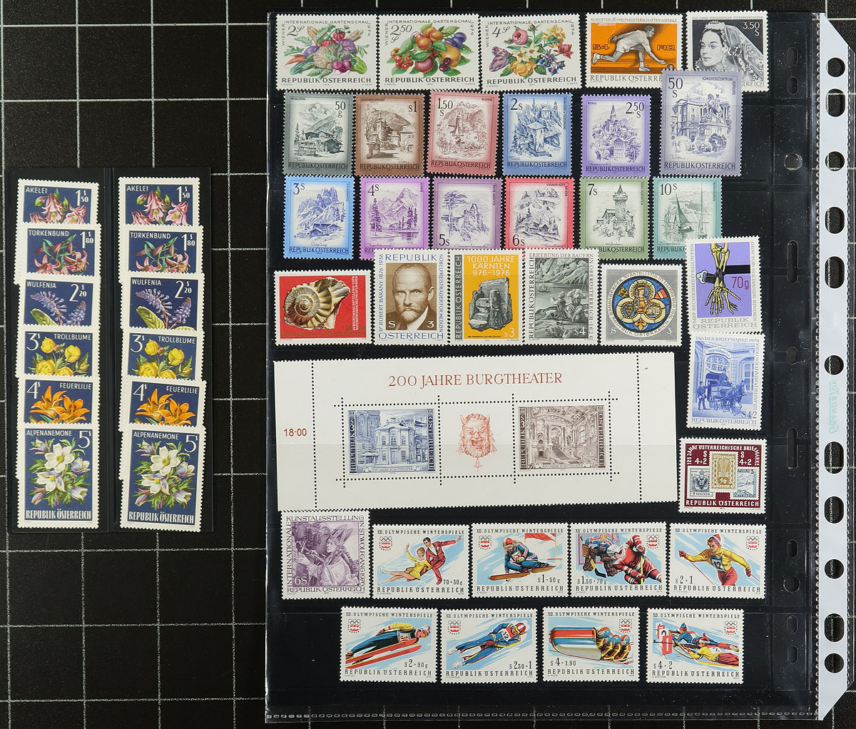 Accumulation of primarily never hinged Austria, 1900's-1990's, containing several hundreds of stamps in a variety of formats including a couple of stockbooks, album and stock pages, glassines, etc. A spot check indicated material primarily ranging from Scott #91/1608, including a few airmails, souvenir sheets, and more, with a few items cataloguing $10 and up. Owner's 2018 Scott value for the lot totals US$937.00. A nice lot for all collectors. Estimate =