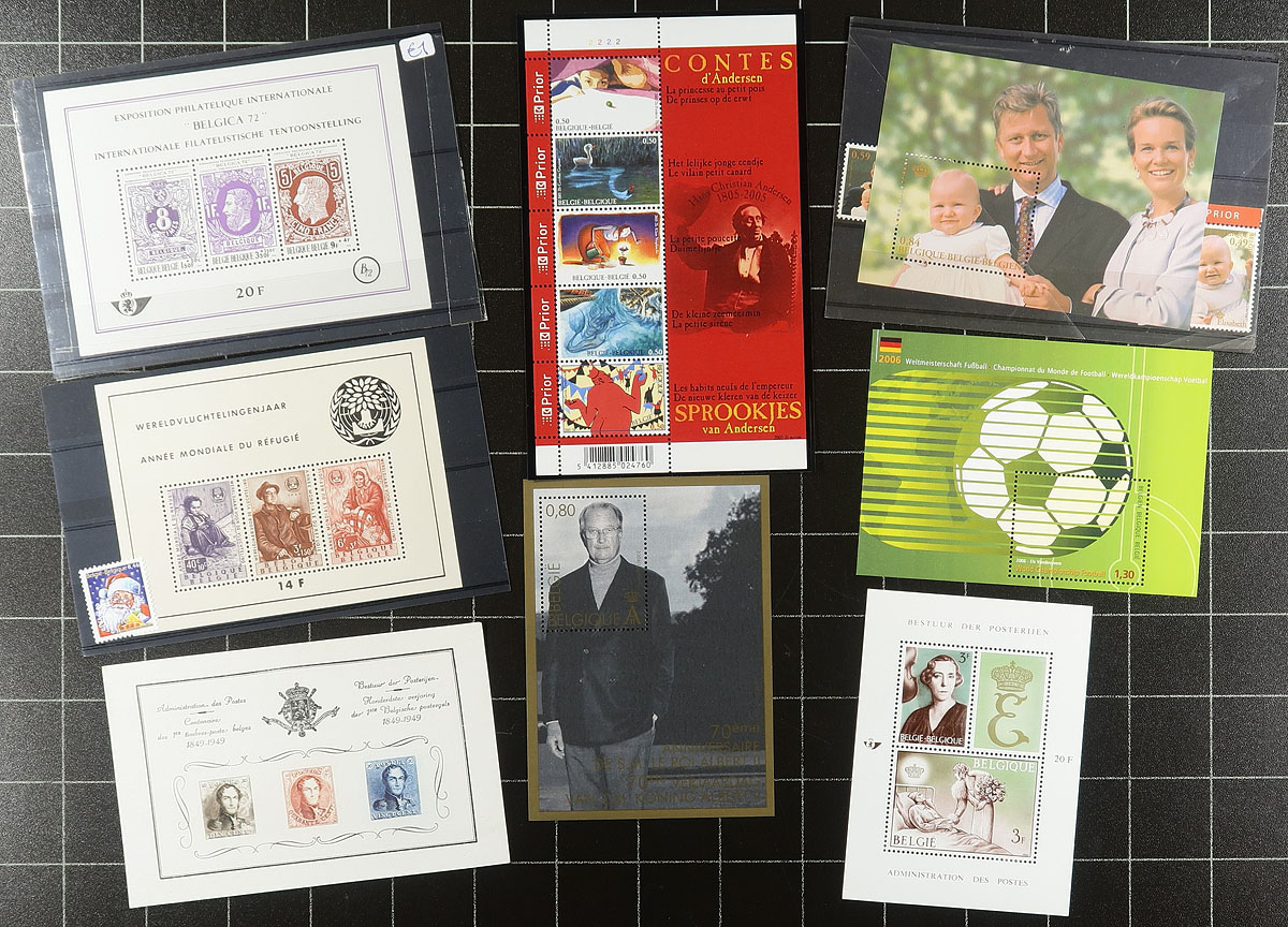 Nice group of roughly 75 never hinged Belgium souvenir sheets, generally ranging from 2005-2009, with a spot check indicating some souvenir sheets, and a few sheetlets, cataloguing $7 to $15 and up each. A nice lot for all collectors and dealers looking for clean material, as much of the material is still in original packaging from the philatelic services. Should be worth our low estimate. Estimate =
