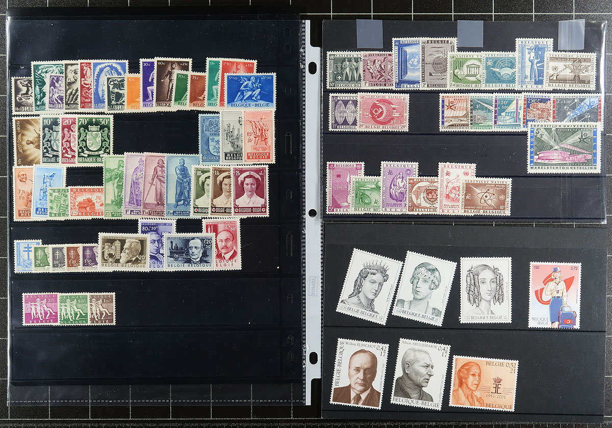 Group of primarily never hinged Belgium, 1900's-2006, containing many hundreds of stamps in a variety of formats including stockpages, 102 cards, glassines, etc. The bulk of the material appears to be post-1950 including singles, sets, a few booklet panes, blocks, semi-postals, and other back of the book material. A spot check indicated some items cataloguing in the $5 to $10 ranges, with the owner's older Scott catalogue value for the lot totaling US$557.00 (with a few more modern stamps not catalogued). A nice lot for the Belgium collector looking to fill holes in albums, or a good way to start a new country. Overall fine to very fine. Estimate =