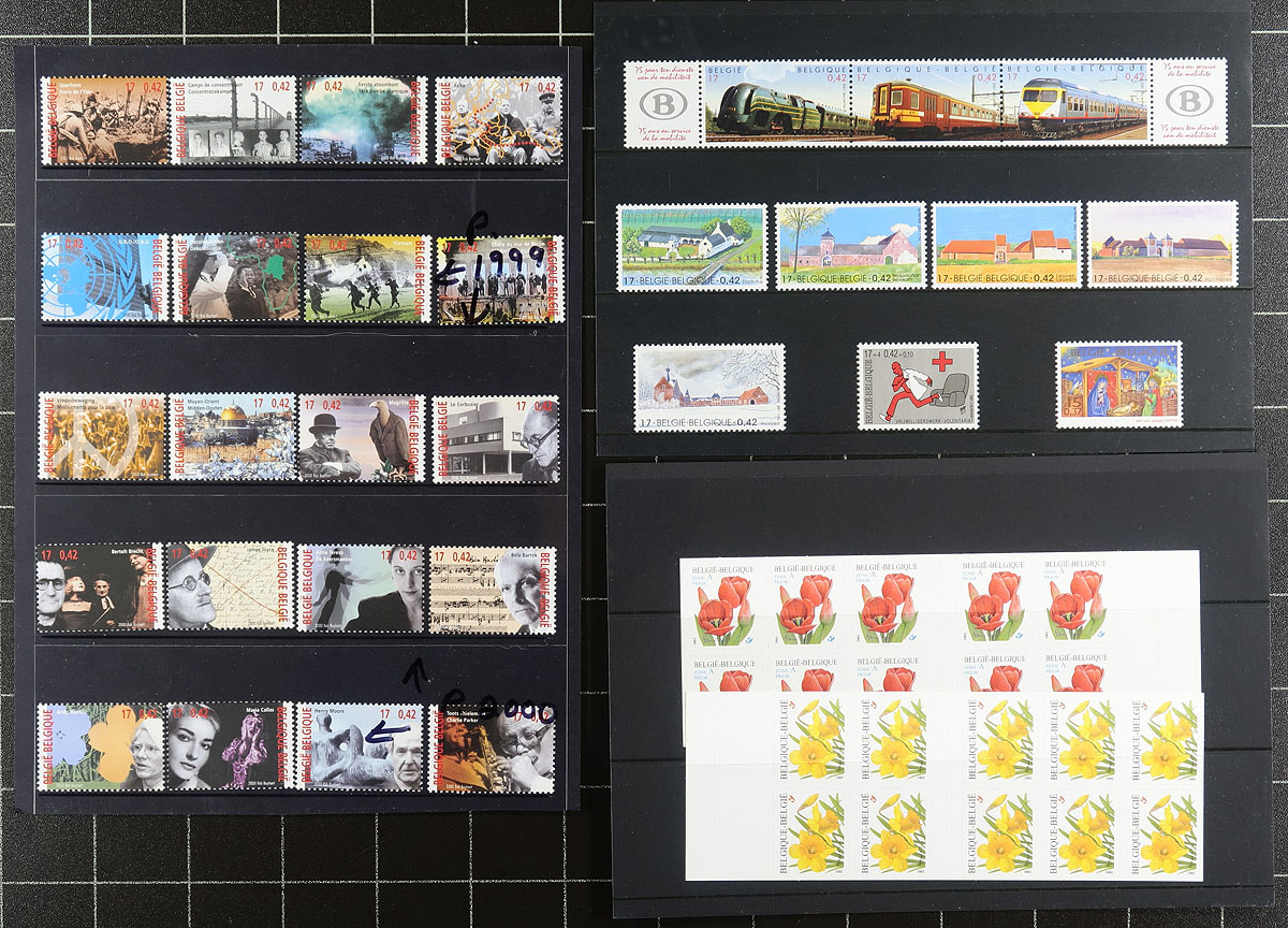 Group of primarily never hinged Belgium, 1900's-2006, containing many hundreds of stamps in a variety of formats including stockpages, 102 cards, glassines, etc. The bulk of the material appears to be post-1950 including singles, sets, a few booklet panes, blocks, semi-postals, and other back of the book material. A spot check indicated some items cataloguing in the $5 to $10 ranges, with the owner's older Scott catalogue value for the lot totaling US$557.00 (with a few more modern stamps not catalogued). A nice lot for the Belgium collector looking to fill holes in albums, or a good way to start a new country. Overall fine to very fine. Estimate =