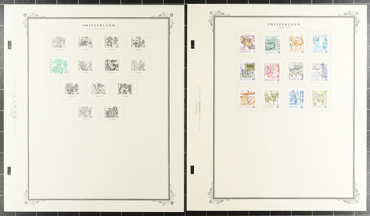 Collection of primarily never hinged Switzerland, 1939-1994, containing about 500 stamps in over 10 stock or album pages. The collection ranges from Scott #328/949, along with a few souvenir sheets and back of the book issues. A spot check indicated some material cataloguing $5 to $10 each, with the owner's 2017 Scott catalogue value for the lot totaling US$932.00. A nice lot for all collectors from this popular collecting country, overall very fine. Estimate =