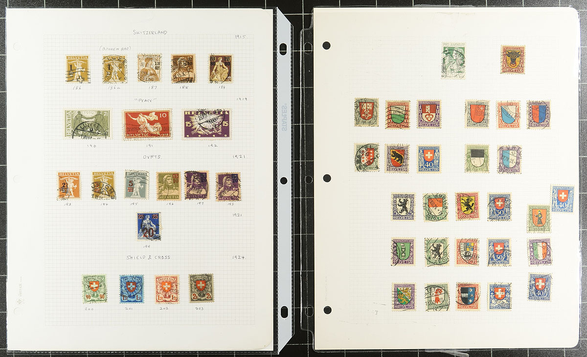Collection / accumulation of used Switzerland, 1862-2013, containing over 1,500 stamps on several album or stock pages. The collection generally ranges from Scott #53/1496, along with singles and partial sets of semi-postals ranging from #B1/#B40, with some material cataloguing $10 and up. Owner's 2017 Scott catalogue value for the lot totals US$1,057.00, leaving better finds to the dedicated collector. Postmark interest includes cds types among others. A nice lot for all collectors of used material, overall fine to very fine. Estimate =