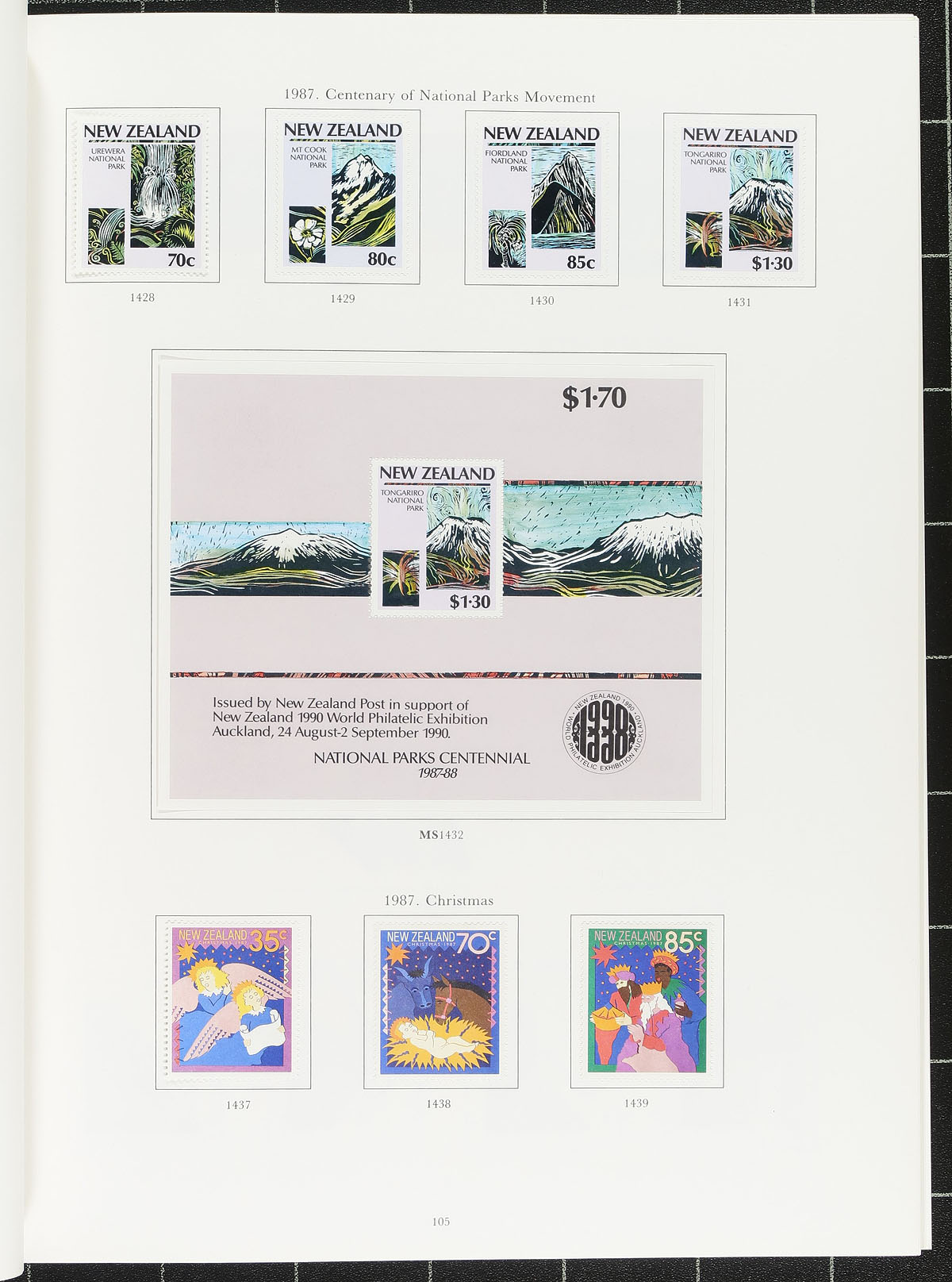 Collection of primarily mint never hinged New Zealand, 1882-2003, containing many hundreds of stamps in roughly 20 stock or album pages. The collection generally ranges from Scott #65/1847, including selection of semi-postals, airmails, a few souvenir sheets, etc. A spot check indicated a few singles, sets, and partial sets cataloguing $15 to $20 and up each. Owner's 2015 Scott catalogue value for the lot totals US$1,744.00, face value alone would be a few hundred dollars. A nice lot for collectors and dealers alike. Estimate =