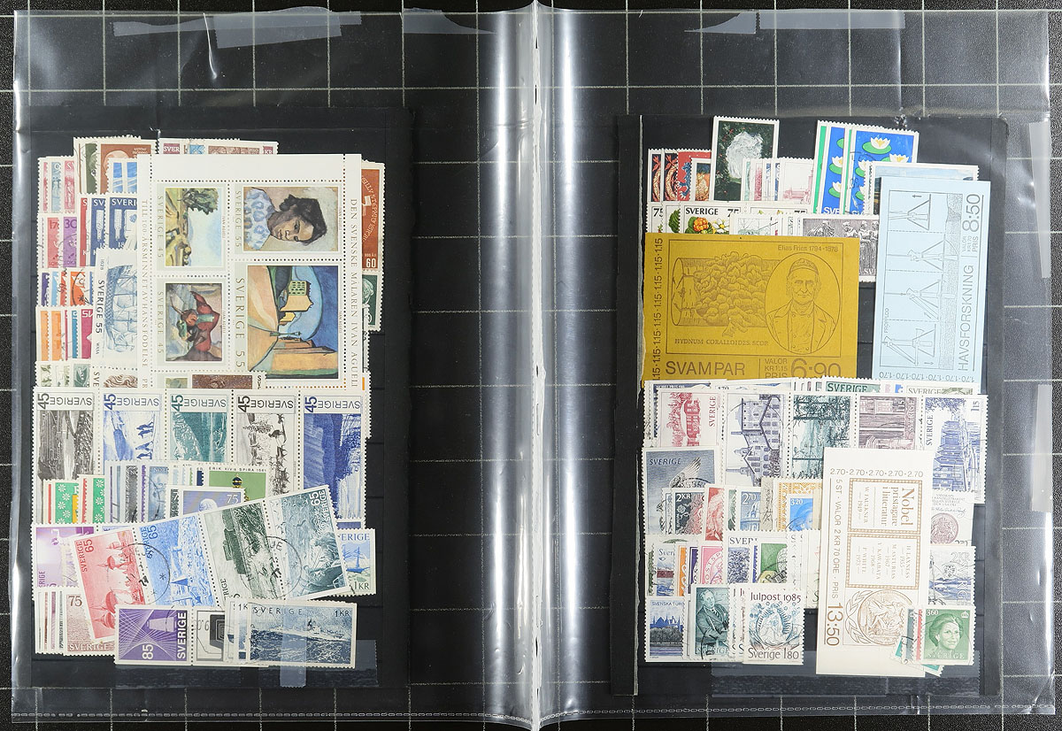 Nice collection / accumulation of used Sweden, 1858-2015, containing over 1,750 stamps in several album or stock pages. The lot generally ranges from Scott #8/2708, including a decent selection of officials, modern issues, and a few souvenir sheets. A spot check indicated a few singles, sets, and partial sets cataloguing $10 and up. Postmark interest includes cds types including some nice "socked on the nose" town cancels. Owner's 2015 Scott catalogue value for the lot totals US$1,308.00 ($1765.80 CDN). A nice lot for Sweden or worldwide used collector, overall fine to very fine. Estimate =