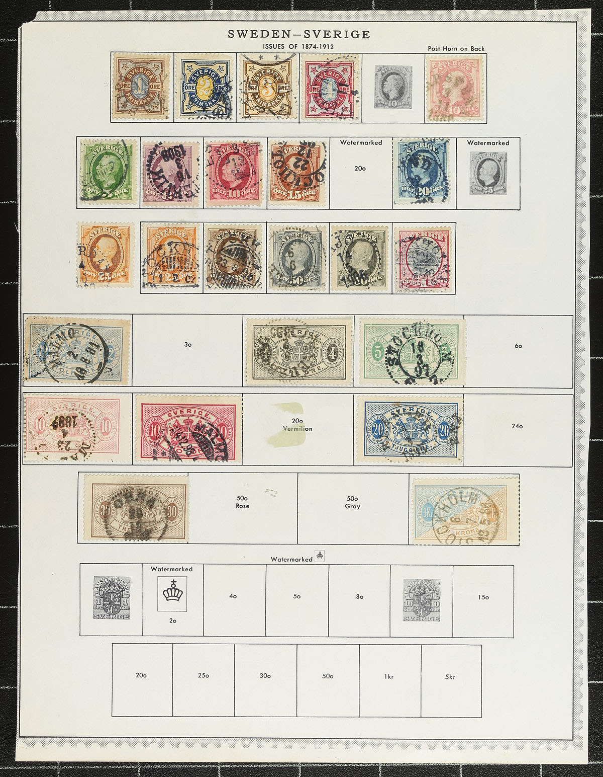 Nice collection / accumulation of used Sweden, 1858-2015, containing over 1,750 stamps in several album or stock pages. The lot generally ranges from Scott #8/2708, including a decent selection of officials, modern issues, and a few souvenir sheets. A spot check indicated a few singles, sets, and partial sets cataloguing $10 and up. Postmark interest includes cds types including some nice "socked on the nose" town cancels. Owner's 2015 Scott catalogue value for the lot totals US$1,308.00 ($1765.80 CDN). A nice lot for Sweden or worldwide used collector, overall fine to very fine. Estimate =