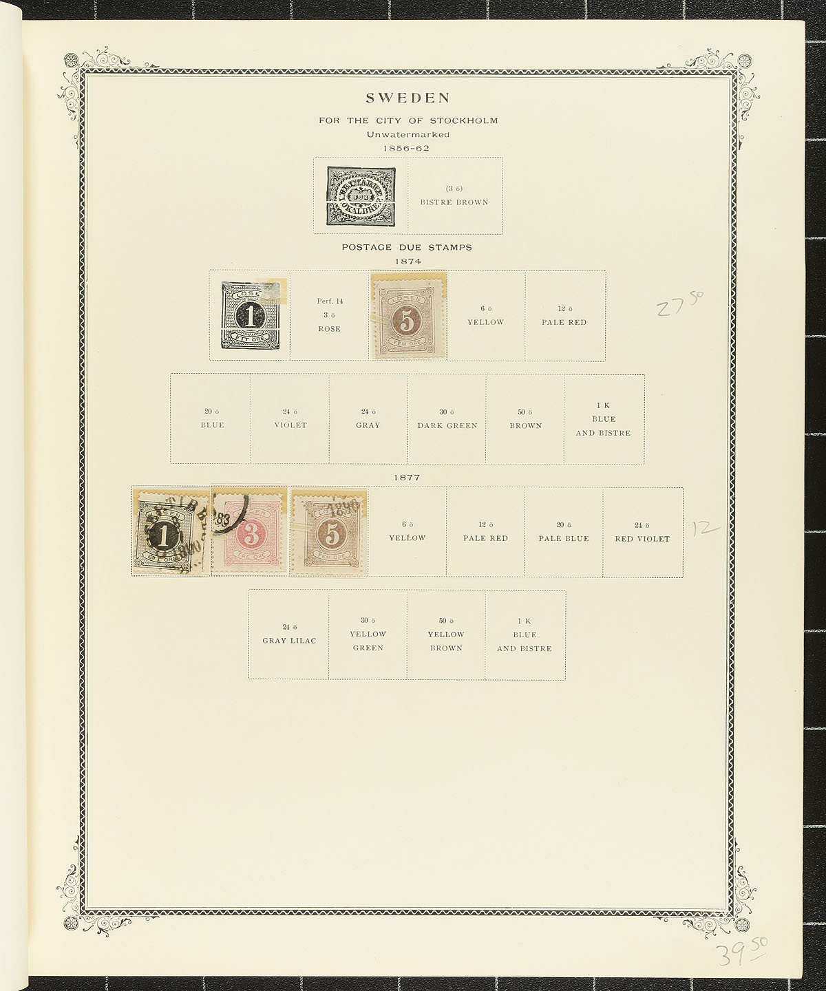 Nice collection / accumulation of used Sweden, 1858-2015, containing over 1,750 stamps in several album or stock pages. The lot generally ranges from Scott #8/2708, including a decent selection of officials, modern issues, and a few souvenir sheets. A spot check indicated a few singles, sets, and partial sets cataloguing $10 and up. Postmark interest includes cds types including some nice "socked on the nose" town cancels. Owner's 2015 Scott catalogue value for the lot totals US$1,308.00 ($1765.80 CDN). A nice lot for Sweden or worldwide used collector, overall fine to very fine. Estimate =