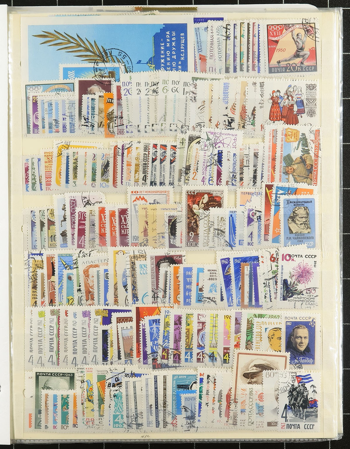 Large offering of primarily used Russia, 1880's-1999, containing a few thousand stamps, in several stock or album pages. The lot generally ranges from Scott #27/6535, noting several sets and partial sets, souvenir sheets, and back of the book material. Owner's 2012 Scott catalogue value for the lot totals US$1,045.00 ($1410.75 CDN, roughly 40c a stamp), leaving better finds to the dedicated collector. It appears some of the used have cto cancels, noting some mild duplication of sine issues, still a nice lot for the worldwide collector. Estimate =