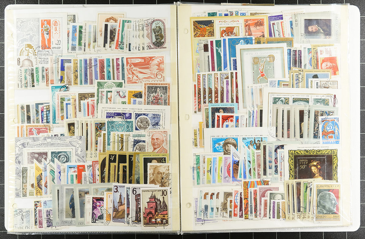 Large offering of primarily used Russia, 1880's-1999, containing a few thousand stamps, in several stock or album pages. The lot generally ranges from Scott #27/6535, noting several sets and partial sets, souvenir sheets, and back of the book material. Owner's 2012 Scott catalogue value for the lot totals US$1,045.00 ($1410.75 CDN, roughly 40c a stamp), leaving better finds to the dedicated collector. It appears some of the used have cto cancels, noting some mild duplication of sine issues, still a nice lot for the worldwide collector. Estimate =