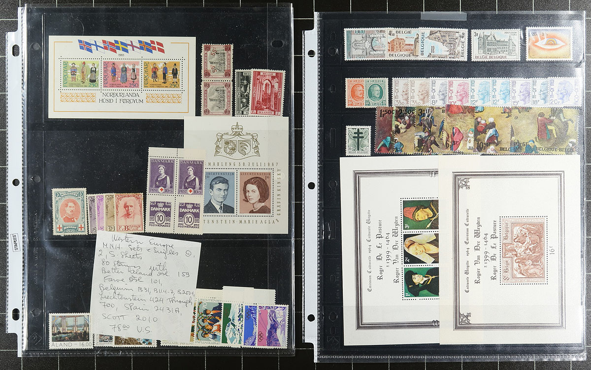 European Holding. Nice grouping of mint Europe, 1910's-1990's, containing roughly 875 stamps in over 15 album or stock pages. We note representation from a handful of different countries including Germany, Austria (including a 2010 year set), Italy, Belgium, and a few more. A spot check indicated singles, sets, and partial sets, a few souvenir sheets and back of the book material. Owner's older Scott catalogue value for the lot totals US$1,235.00 ($1667.25 CDN), leaving finds to the dedicated collector. A mix of hinged and never hinged material within, ideal for the worldwide collector, overall very fine. Estimate =