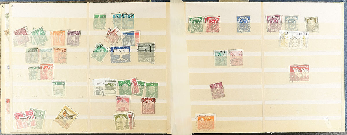Europe. Large accumulation of used Europe, 1850's-1980s, containing many thousands of stamps in a variety of formats including several album pages, stock pages, a few stockbooks, and more. Most of the representation appears to be from Germany, Austria, Switzerland, Luxembourg, Netherlands, Poland, Italy, and a few more, noting singles, sets, partial sets, souvenir sheets, and back of the book material. Most of the material has been catalogued by the owner, with an older value totaling US$1,255.00, leaving potential finds, including better postmarks, to the dedicated collector. A good lot for the worldwide postmark hunter, overall fine to very fine. Estimate =