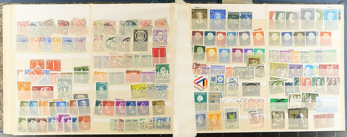 Europe. Large accumulation of used Europe, 1850's-1980s, containing many thousands of stamps in a variety of formats including several album pages, stock pages, a few stockbooks, and more. Most of the representation appears to be from Germany, Austria, Switzerland, Luxembourg, Netherlands, Poland, Italy, and a few more, noting singles, sets, partial sets, souvenir sheets, and back of the book material. Most of the material has been catalogued by the owner, with an older value totaling US$1,255.00, leaving potential finds, including better postmarks, to the dedicated collector. A good lot for the worldwide postmark hunter, overall fine to very fine. Estimate =
