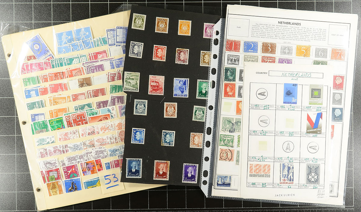 Europe. Large accumulation of used Europe, 1850's-1980s, containing many thousands of stamps in a variety of formats including several album pages, stock pages, a few stockbooks, and more. Most of the representation appears to be from Germany, Austria, Switzerland, Luxembourg, Netherlands, Poland, Italy, and a few more, noting singles, sets, partial sets, souvenir sheets, and back of the book material. Most of the material has been catalogued by the owner, with an older value totaling US$1,255.00, leaving potential finds, including better postmarks, to the dedicated collector. A good lot for the worldwide postmark hunter, overall fine to very fine. Estimate =