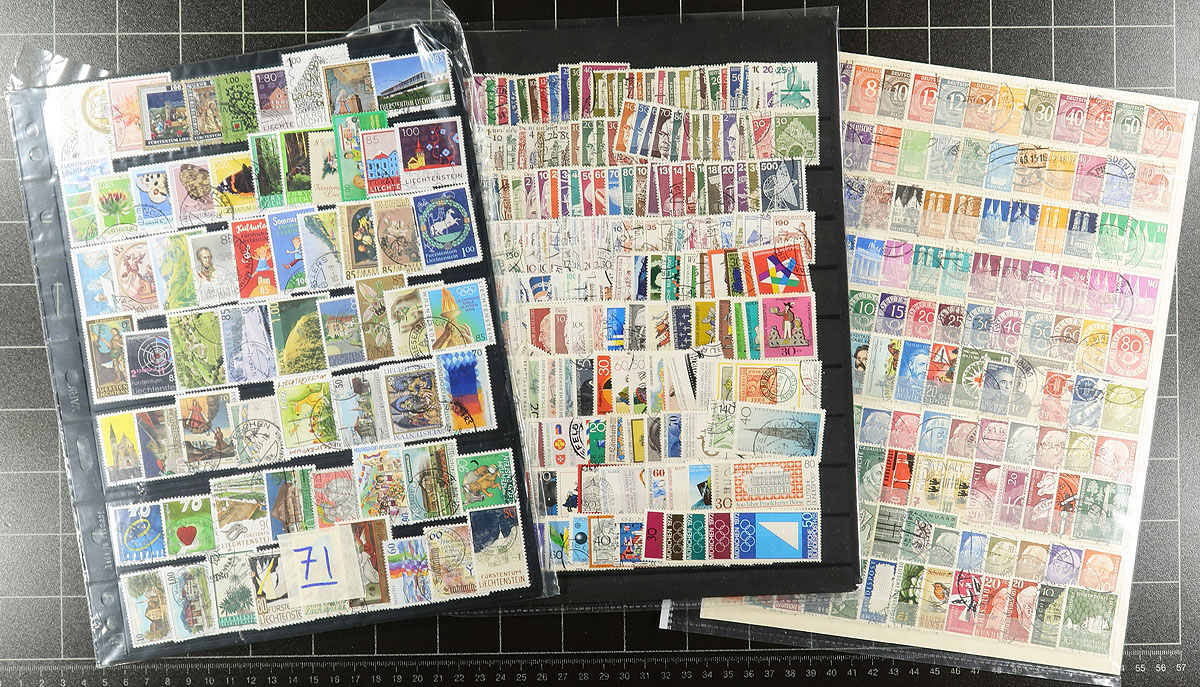 Europe. Large accumulation of used Europe, 1850's-1980s, containing many thousands of stamps in a variety of formats including several album pages, stock pages, a few stockbooks, and more. Most of the representation appears to be from Germany, Austria, Switzerland, Luxembourg, Netherlands, Poland, Italy, and a few more, noting singles, sets, partial sets, souvenir sheets, and back of the book material. Most of the material has been catalogued by the owner, with an older value totaling US$1,255.00, leaving potential finds, including better postmarks, to the dedicated collector. A good lot for the worldwide postmark hunter, overall fine to very fine. Estimate =