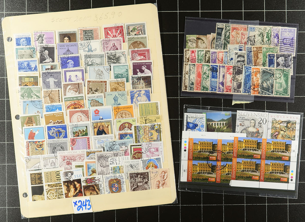 Europe. Large accumulation of used Europe, 1850's-1980s, containing many thousands of stamps in a variety of formats including several album pages, stock pages, a few stockbooks, and more. Most of the representation appears to be from Germany, Austria, Switzerland, Luxembourg, Netherlands, Poland, Italy, and a few more, noting singles, sets, partial sets, souvenir sheets, and back of the book material. Most of the material has been catalogued by the owner, with an older value totaling US$1,255.00, leaving potential finds, including better postmarks, to the dedicated collector. A good lot for the worldwide postmark hunter, overall fine to very fine. Estimate =