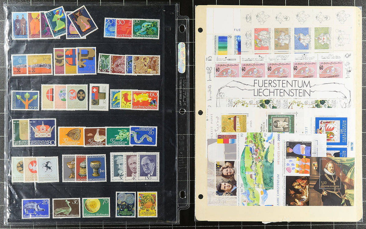 Nice grouping of primarily never hinged Liechtenstein, 1960's-2008, containing mostly complete sheetlets of 20 for several issues, along with a few sets and souvenir sheets in several album pages. The lot generally ranges from Scott #424/1422, with the majority of material in sheetlets from the 1980's onwards. A spot check indicated sheetlets cataloguing $10 to $40 each, along with a few sheets with cto cancels. A nice clean lot for all collectors. Estimate =