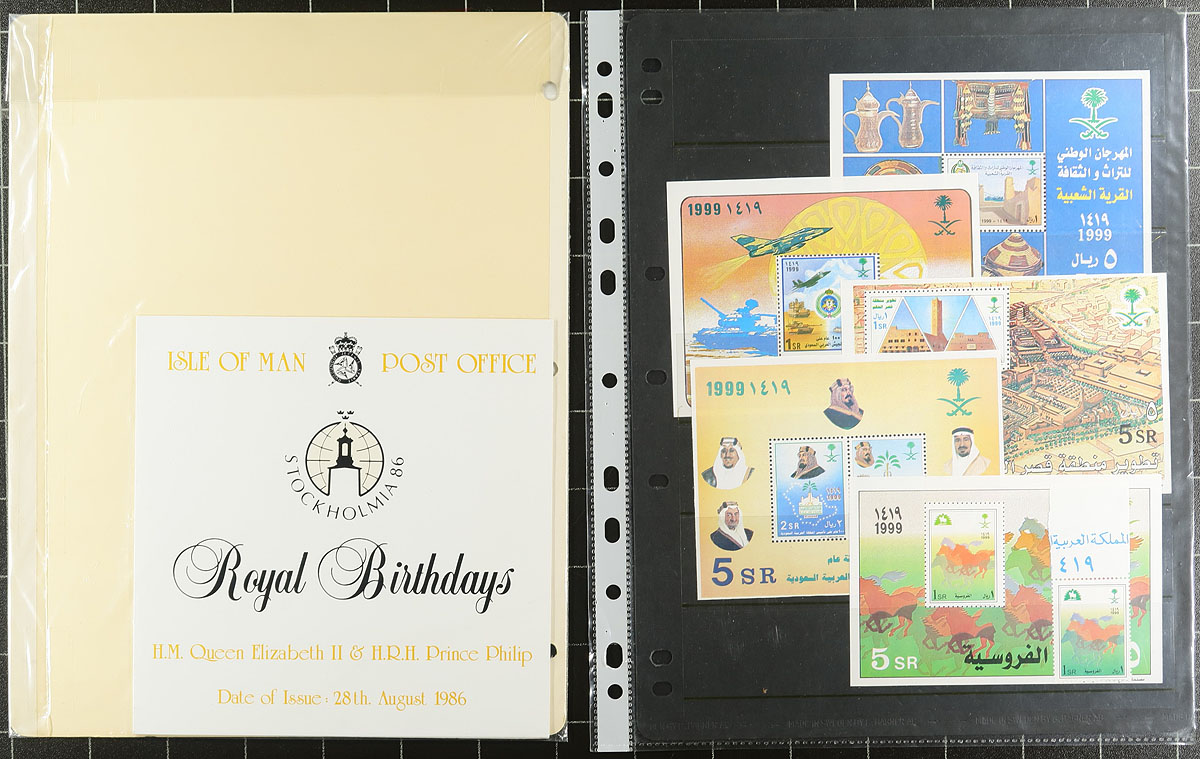 Nice grouping of primarily never hinged worldwide souvenir sheets and sheetlets, containing many hundreds in album or stock pages and a stockbook. The material generally ranges from the 1960's onwards with better representation from European countries (the stockbook alone contains over 100 different from Hungary), along with New Zealand and other British Commonwealth areas, Japan, and more. A spot check indicated some material cataloguing in the $5 to $10 range each, making this a nice lot for topical and thematic collectors, along with dealers looking for stock, overall very fine. Estimate =