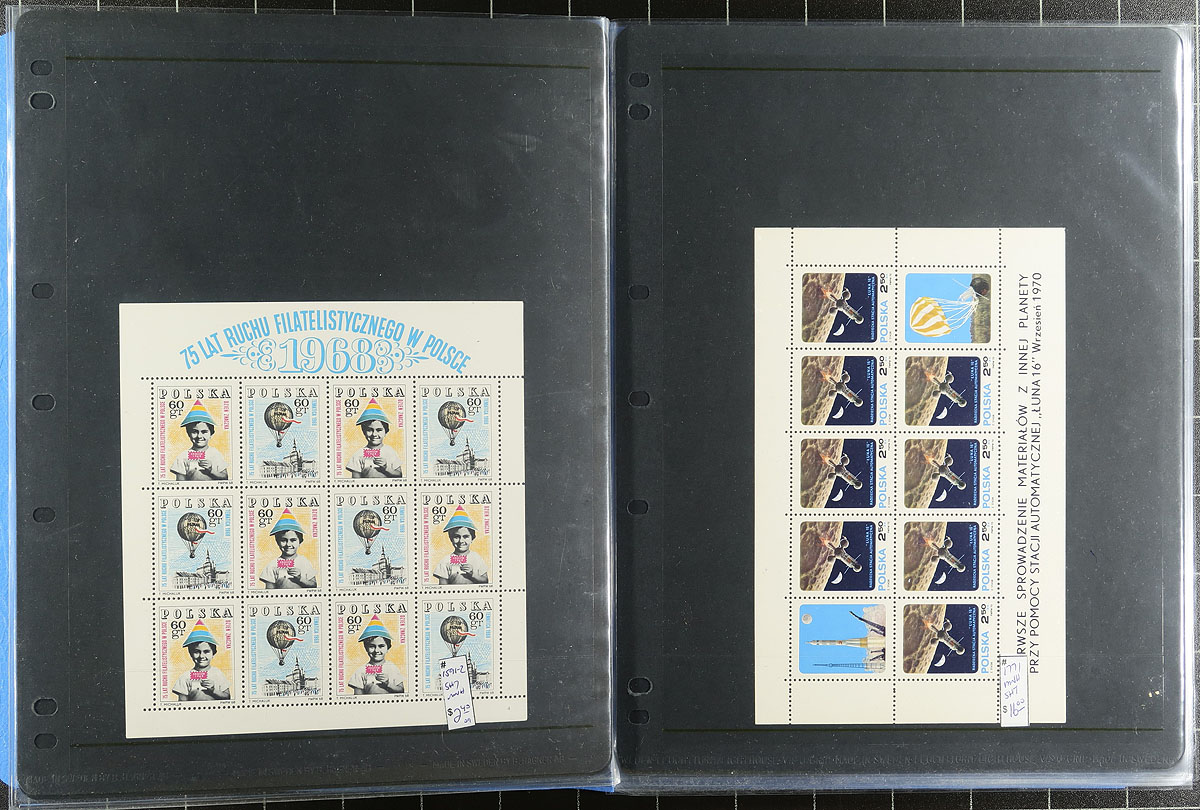 Nice grouping of primarily never hinged worldwide souvenir sheets and sheetlets, containing many hundreds in album or stock pages and a stockbook. The material generally ranges from the 1960's onwards with better representation from European countries (the stockbook alone contains over 100 different from Hungary), along with New Zealand and other British Commonwealth areas, Japan, and more. A spot check indicated some material cataloguing in the $5 to $10 range each, making this a nice lot for topical and thematic collectors, along with dealers looking for stock, overall very fine. Estimate =