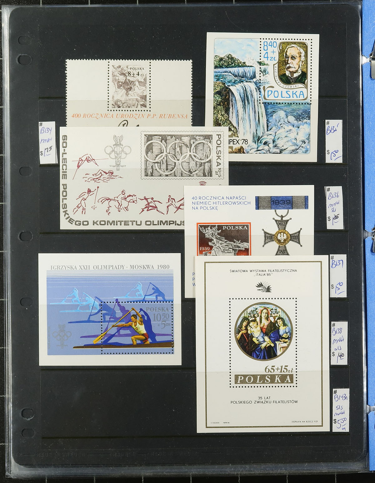 Nice grouping of primarily never hinged worldwide souvenir sheets and sheetlets, containing many hundreds in album or stock pages and a stockbook. The material generally ranges from the 1960's onwards with better representation from European countries (the stockbook alone contains over 100 different from Hungary), along with New Zealand and other British Commonwealth areas, Japan, and more. A spot check indicated some material cataloguing in the $5 to $10 range each, making this a nice lot for topical and thematic collectors, along with dealers looking for stock, overall very fine. Estimate =