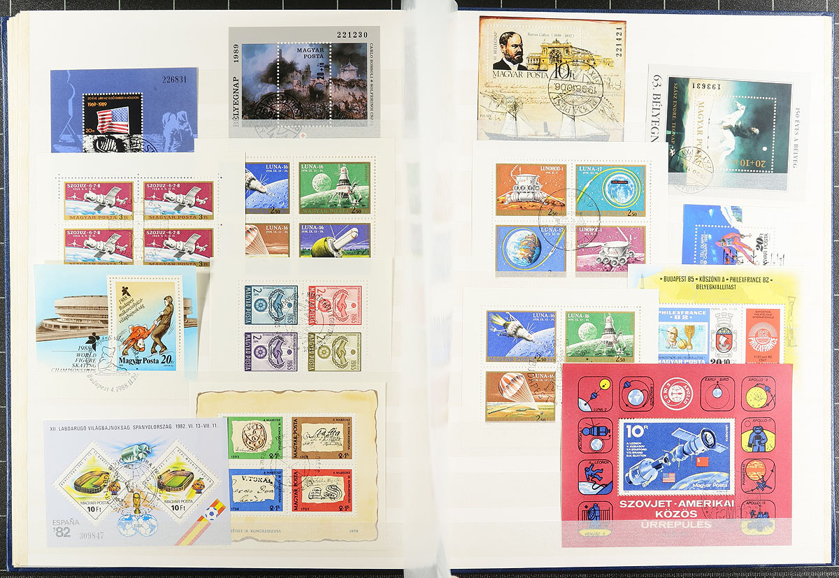 Nice grouping of primarily never hinged worldwide souvenir sheets and sheetlets, containing many hundreds in album or stock pages and a stockbook. The material generally ranges from the 1960's onwards with better representation from European countries (the stockbook alone contains over 100 different from Hungary), along with New Zealand and other British Commonwealth areas, Japan, and more. A spot check indicated some material cataloguing in the $5 to $10 range each, making this a nice lot for topical and thematic collectors, along with dealers looking for stock, overall very fine. Estimate =