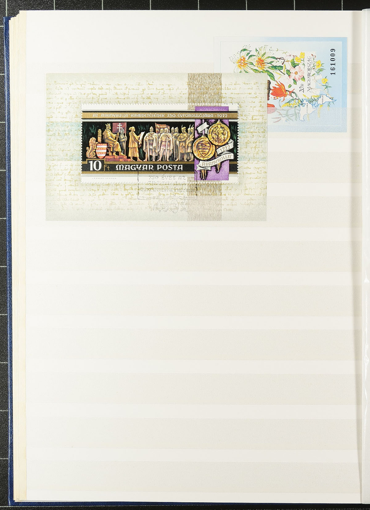 Nice grouping of primarily never hinged worldwide souvenir sheets and sheetlets, containing many hundreds in album or stock pages and a stockbook. The material generally ranges from the 1960's onwards with better representation from European countries (the stockbook alone contains over 100 different from Hungary), along with New Zealand and other British Commonwealth areas, Japan, and more. A spot check indicated some material cataloguing in the $5 to $10 range each, making this a nice lot for topical and thematic collectors, along with dealers looking for stock, overall very fine. Estimate =
