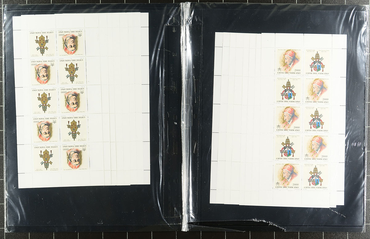 Nice grouping of primarily never hinged worldwide souvenir sheets and sheetlets, containing many hundreds in album or stock pages and a stockbook. The material generally ranges from the 1960's onwards with better representation from European countries (the stockbook alone contains over 100 different from Hungary), along with New Zealand and other British Commonwealth areas, Japan, and more. A spot check indicated some material cataloguing in the $5 to $10 range each, making this a nice lot for topical and thematic collectors, along with dealers looking for stock, overall very fine. Estimate =