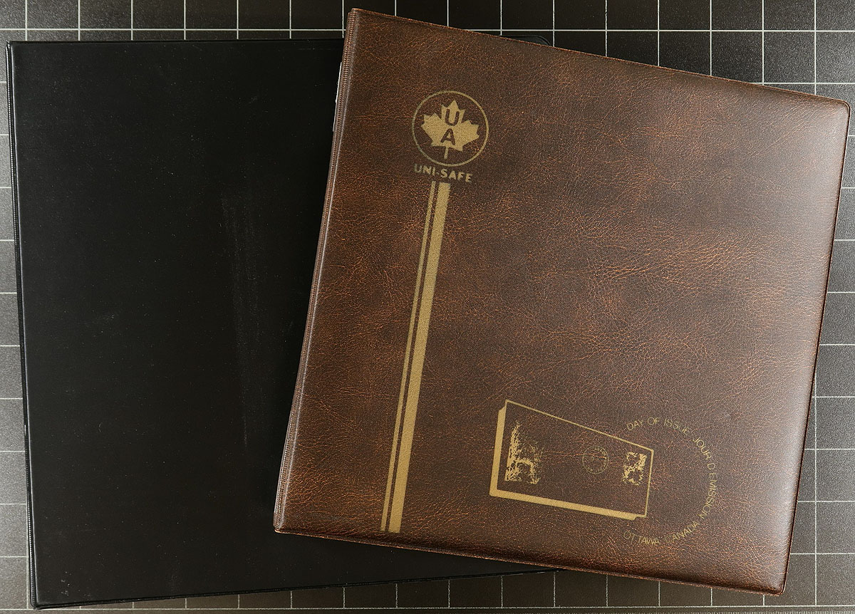 Nice gently used assortment of useful supplies including 5 stockbooks, 8 cover albums for short and long covers, loose and a binder full of manila stock pages (roughly 50 plus), and a box of roughly 700 of dealer stock cards (mostly 102's). Most items have light pencil markings, but still useful at a fraction of the original retail price. Estimate =