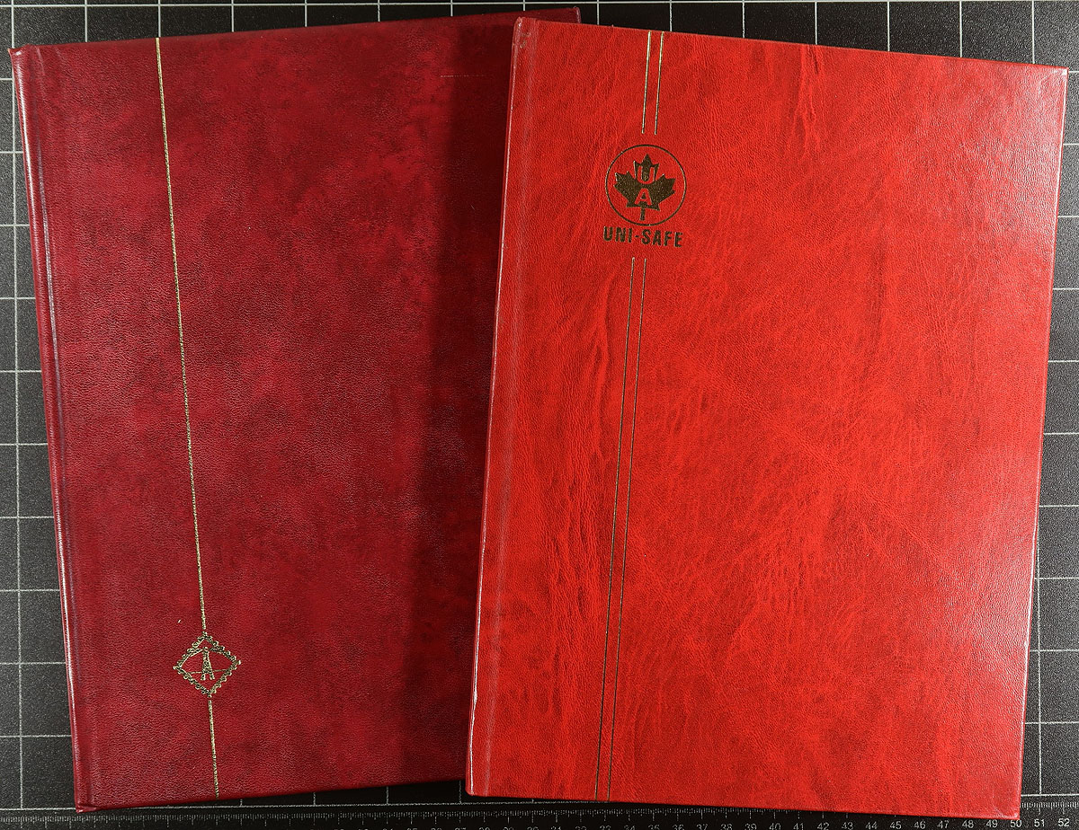Nice gently used assortment of useful supplies including 5 stockbooks, 8 cover albums for short and long covers, loose and a binder full of manila stock pages (roughly 50 plus), and a box of roughly 700 of dealer stock cards (mostly 102's). Most items have light pencil markings, but still useful at a fraction of the original retail price. Estimate =