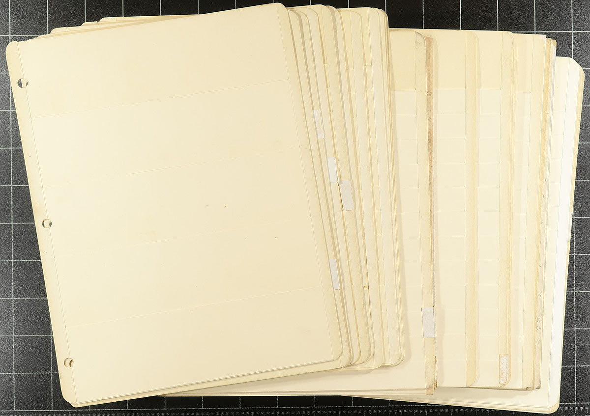 Nice gently used assortment of useful supplies including 5 stockbooks, 8 cover albums for short and long covers, loose and a binder full of manila stock pages (roughly 50 plus), and a box of roughly 700 of dealer stock cards (mostly 102's). Most items have light pencil markings, but still useful at a fraction of the original retail price. Estimate =