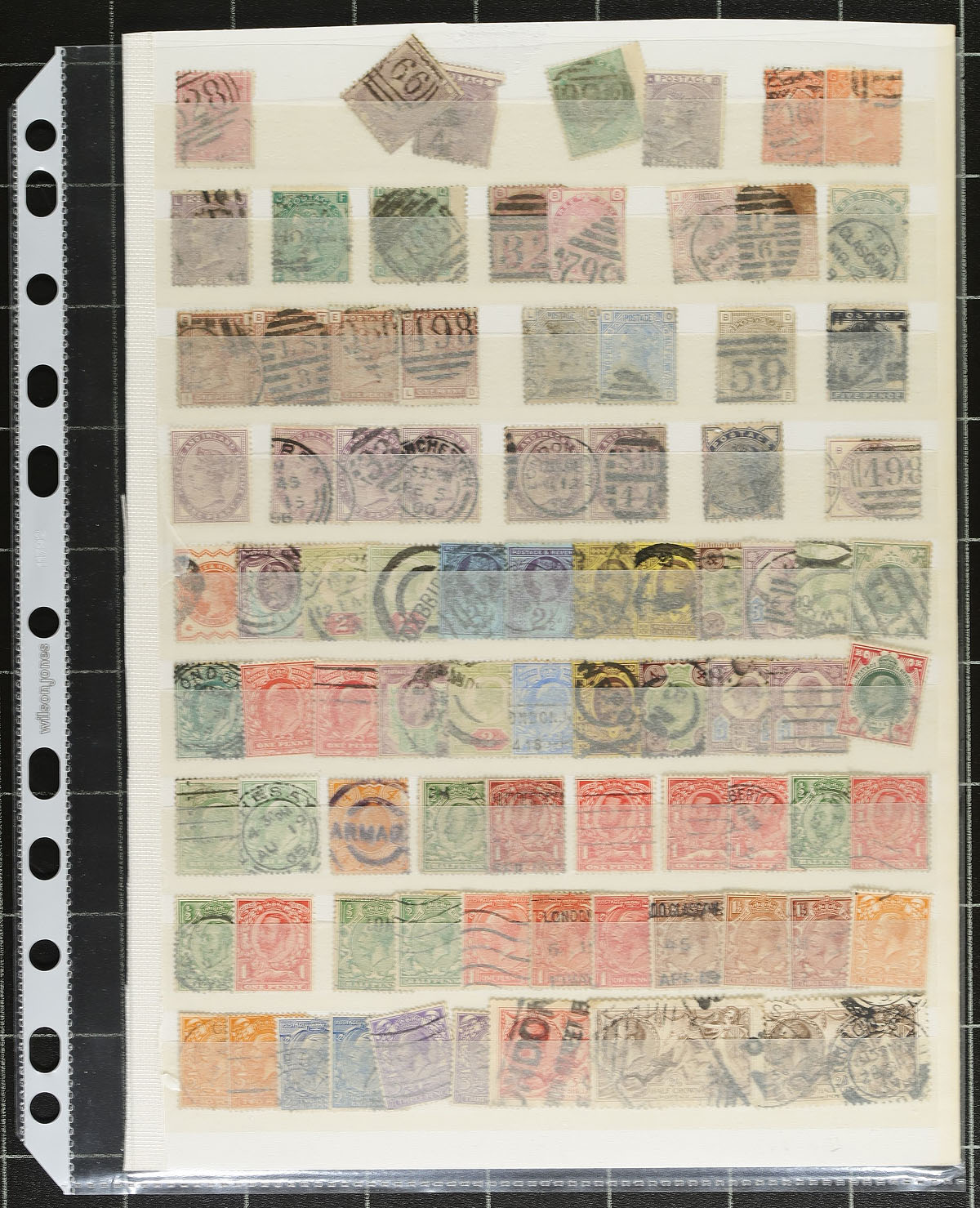Collection / accumulation of used Great Britain, 1857-1990's, containing over 1,000 stamps in over 20 stock or album pages, and a stockbook. The lot generally ranges from Scott #26/1448, including a small selection of Victorian issues including #s 26, 27, 27a, 28, 39, 43, 45, 48, along with a selection of Penny Reds on pages collected for plate numbers, several used blocks, and much more. A spot check of catalogue values indicated some stamps ranging from $15 to $40 and up each. A potentially high cataloguing lot, along with some faults with a few of the early issues, overall fine to very fine. Estimate =