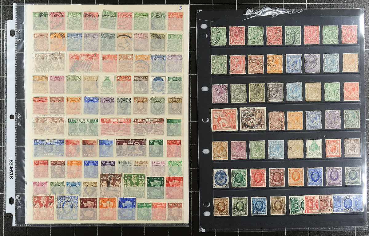 Collection / accumulation of used Great Britain, 1857-1990's, containing over 1,000 stamps in over 20 stock or album pages, and a stockbook. The lot generally ranges from Scott #26/1448, including a small selection of Victorian issues including #s 26, 27, 27a, 28, 39, 43, 45, 48, along with a selection of Penny Reds on pages collected for plate numbers, several used blocks, and much more. A spot check of catalogue values indicated some stamps ranging from $15 to $40 and up each. A potentially high cataloguing lot, along with some faults with a few of the early issues, overall fine to very fine. Estimate =