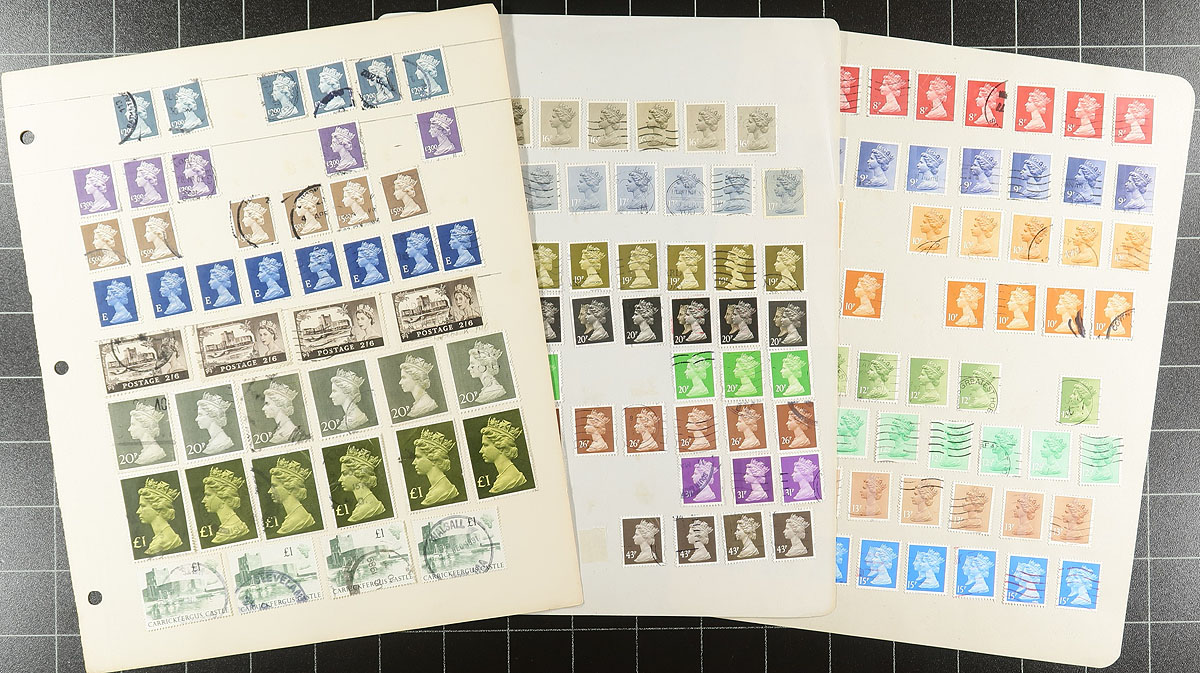 Collection / accumulation of used Great Britain, 1857-1990's, containing over 1,000 stamps in over 20 stock or album pages, and a stockbook. The lot generally ranges from Scott #26/1448, including a small selection of Victorian issues including #s 26, 27, 27a, 28, 39, 43, 45, 48, along with a selection of Penny Reds on pages collected for plate numbers, several used blocks, and much more. A spot check of catalogue values indicated some stamps ranging from $15 to $40 and up each. A potentially high cataloguing lot, along with some faults with a few of the early issues, overall fine to very fine. Estimate =
