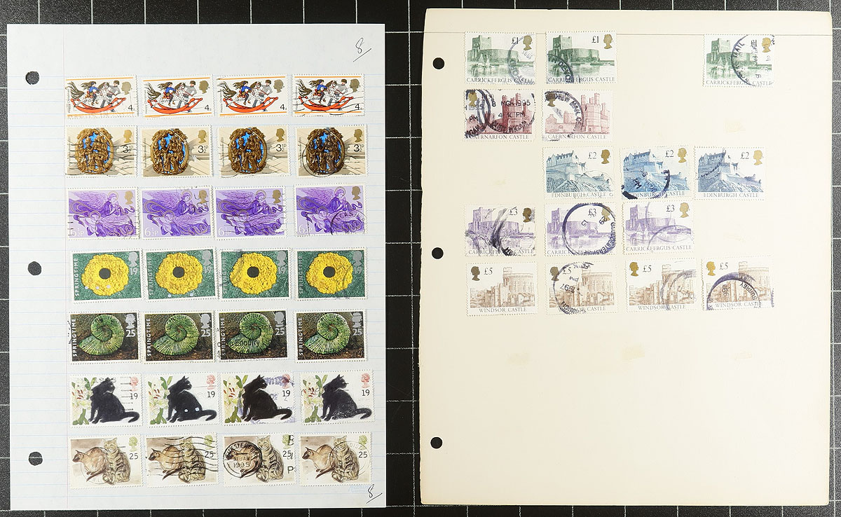 Collection / accumulation of used Great Britain, 1857-1990's, containing over 1,000 stamps in over 20 stock or album pages, and a stockbook. The lot generally ranges from Scott #26/1448, including a small selection of Victorian issues including #s 26, 27, 27a, 28, 39, 43, 45, 48, along with a selection of Penny Reds on pages collected for plate numbers, several used blocks, and much more. A spot check of catalogue values indicated some stamps ranging from $15 to $40 and up each. A potentially high cataloguing lot, along with some faults with a few of the early issues, overall fine to very fine. Estimate =