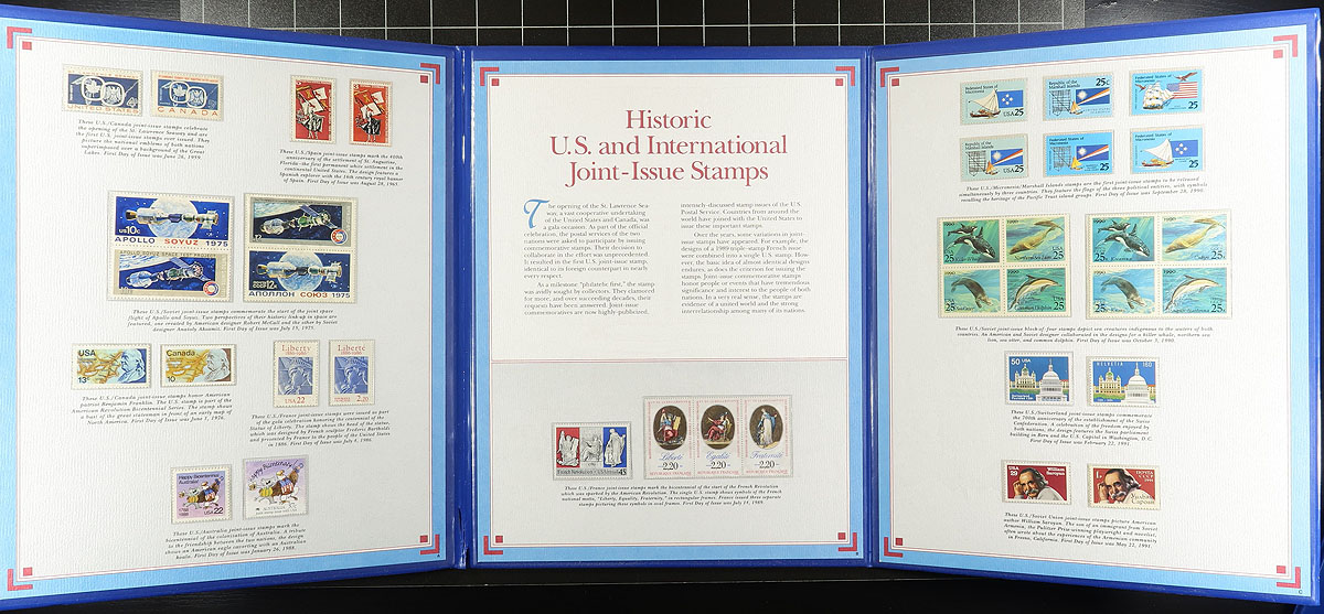 Carton full of United States Topical collections, containing 8 cover or stamp collections including: The Official Seals of the Thirteen Original Colonies of the United States of America (minted in 23 karat gold foil stamps), The Official Birds and Flowers of Our Fifty States, The Greatest Military Heroes of America, Reader's Digest First Day Cover Collection, U.S. Commemorative Stamp Collector Panels, and a few more. A nice lot for thematic or topical collector. Estimate =