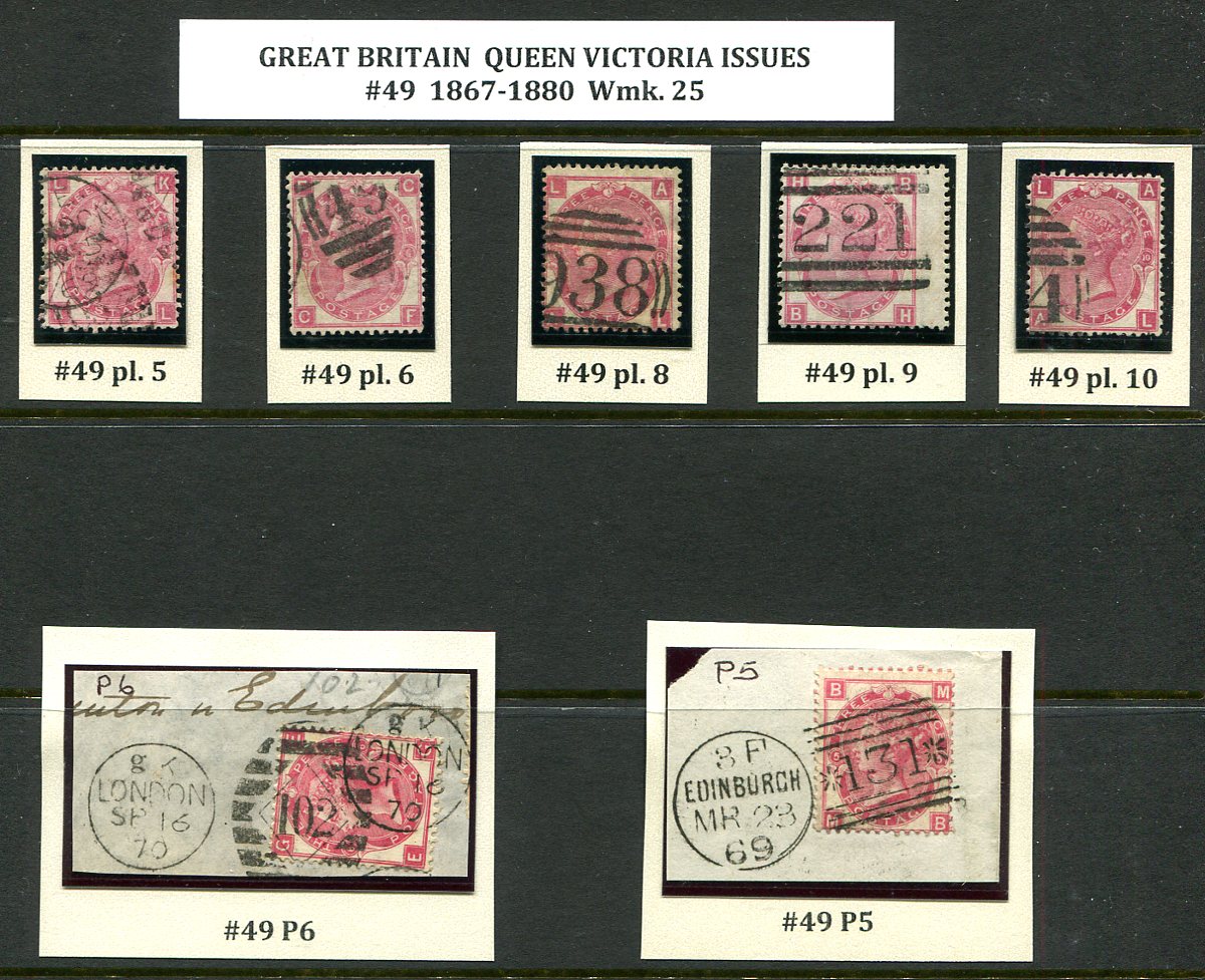 All used selection of various plate numbers of the 1860-1880 issue 3p rose, watermark 25 (Spray of Rose). The group consists of: plate #5 x 2; plate #6 x 2; plate #8, plate #9; and plate #10. All valued as the most common shade. 2025 Scott US$647.50 =