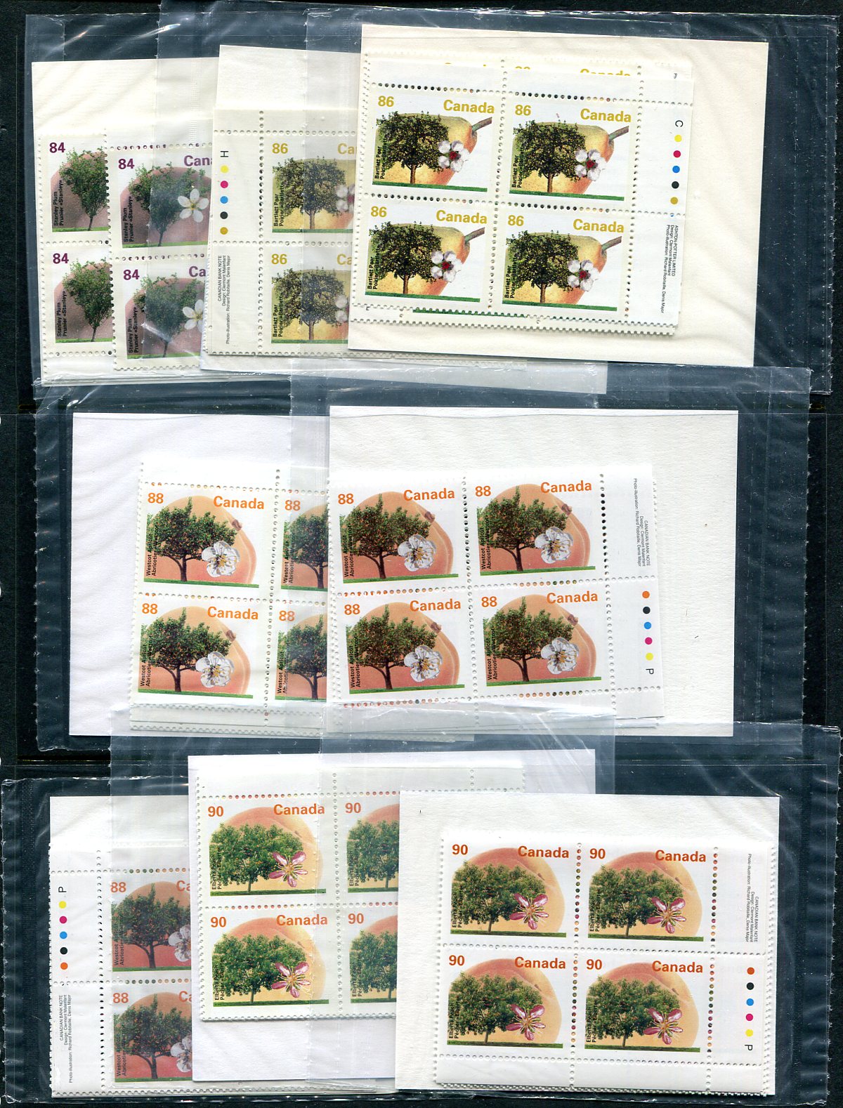 VF mint Never Hinged matched sets of inscription blocks (still in the P.O. sealed plastic) of 21 different printings / values of the 1991-1996 "Fruit Tree" definitive series. The most comprehensive holding we have seen of these popular issues. Don't wait for another of these to come around, as we seldom see an offering as comprehensive as this. Face value alone is $233.92. 2025-2056 Unitrade =