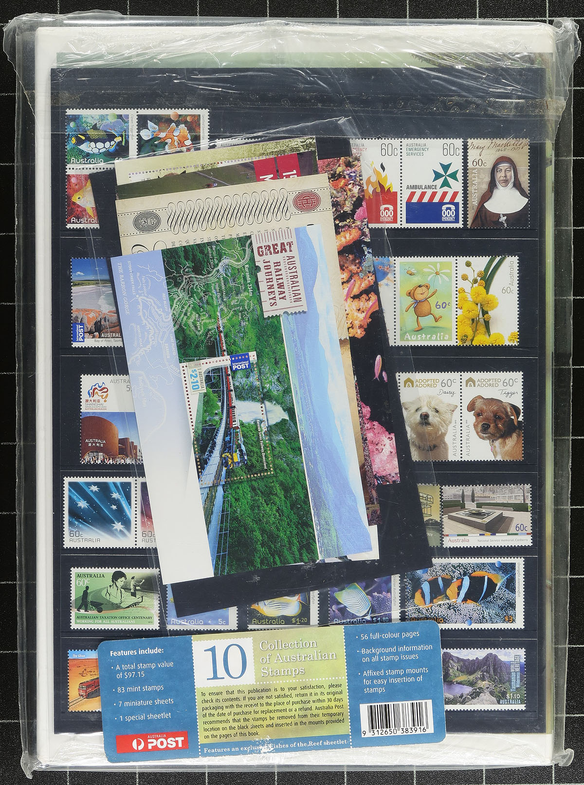Consecutive quintet of hardcover annual year sets covering 2010 to 2014, in their original sleeves (most have been opened, but the stamps are untouched in their separate packs). Each contain about 100 stamps per year, including 7-10 souvenir sheets. Individual stamps have face values up to A$10.00. Includes lots of topical appeal (e.g. animals, sports, flora, stamp on stamp), etc. Each book is about 48-pages to enhance your knowledge of the stamps and what they commemorate. We don’t often see down-under sets that are this recent. With no premium for the albums, the total face value of the stamps is AUD$486.35 in Canadian Dollars =