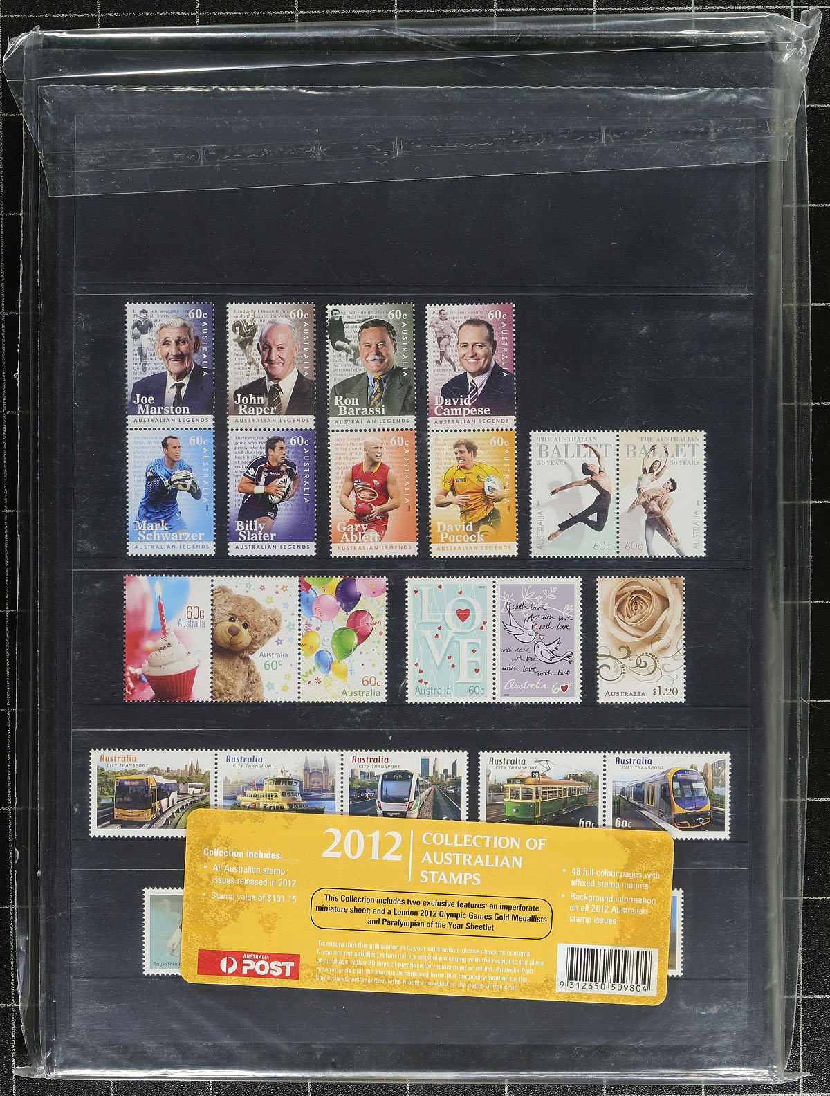 Consecutive quintet of hardcover annual year sets covering 2010 to 2014, in their original sleeves (most have been opened, but the stamps are untouched in their separate packs). Each contain about 100 stamps per year, including 7-10 souvenir sheets. Individual stamps have face values up to A$10.00. Includes lots of topical appeal (e.g. animals, sports, flora, stamp on stamp), etc. Each book is about 48-pages to enhance your knowledge of the stamps and what they commemorate. We don’t often see down-under sets that are this recent. With no premium for the albums, the total face value of the stamps is AUD$486.35 in Canadian Dollars =