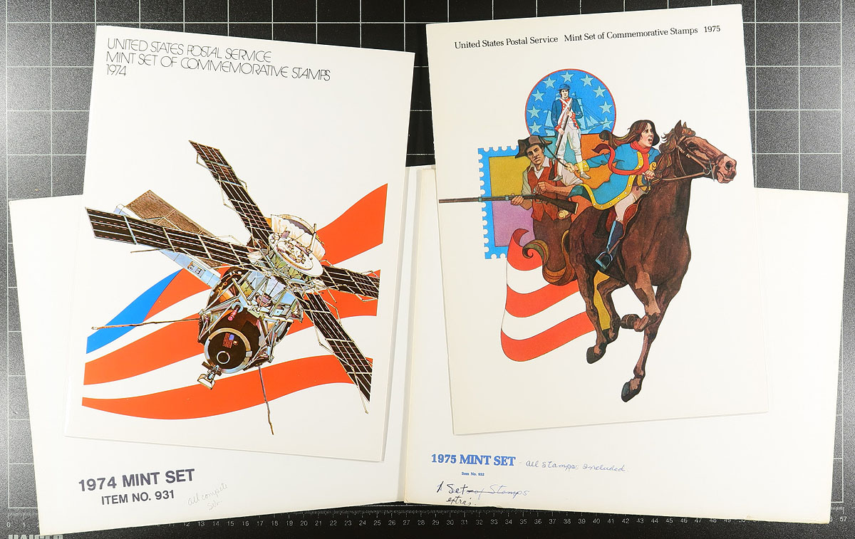 Annual Collections / Year Sets, plus extras! Complete (inclusive) run of Annual Collections / Year Sets booklets 1971-1987, all still in the original Post Office envelopes (including extra examples for 1979 x2 / 1980 x2 / 1987). In addition, there is a Post Office souvenir folder for the 1980 Winter Olympics and a small red stockbook, filled with an array of mint NH singles, blocks and coils. Counted only for the total face value / usable postage, but with none of the uneven postage (i.e. Transportation coils, 7.1c) or small selection of precancels or postage due stamps counted. Total face value US$209.74 ($283.20 CDN). Estimate =