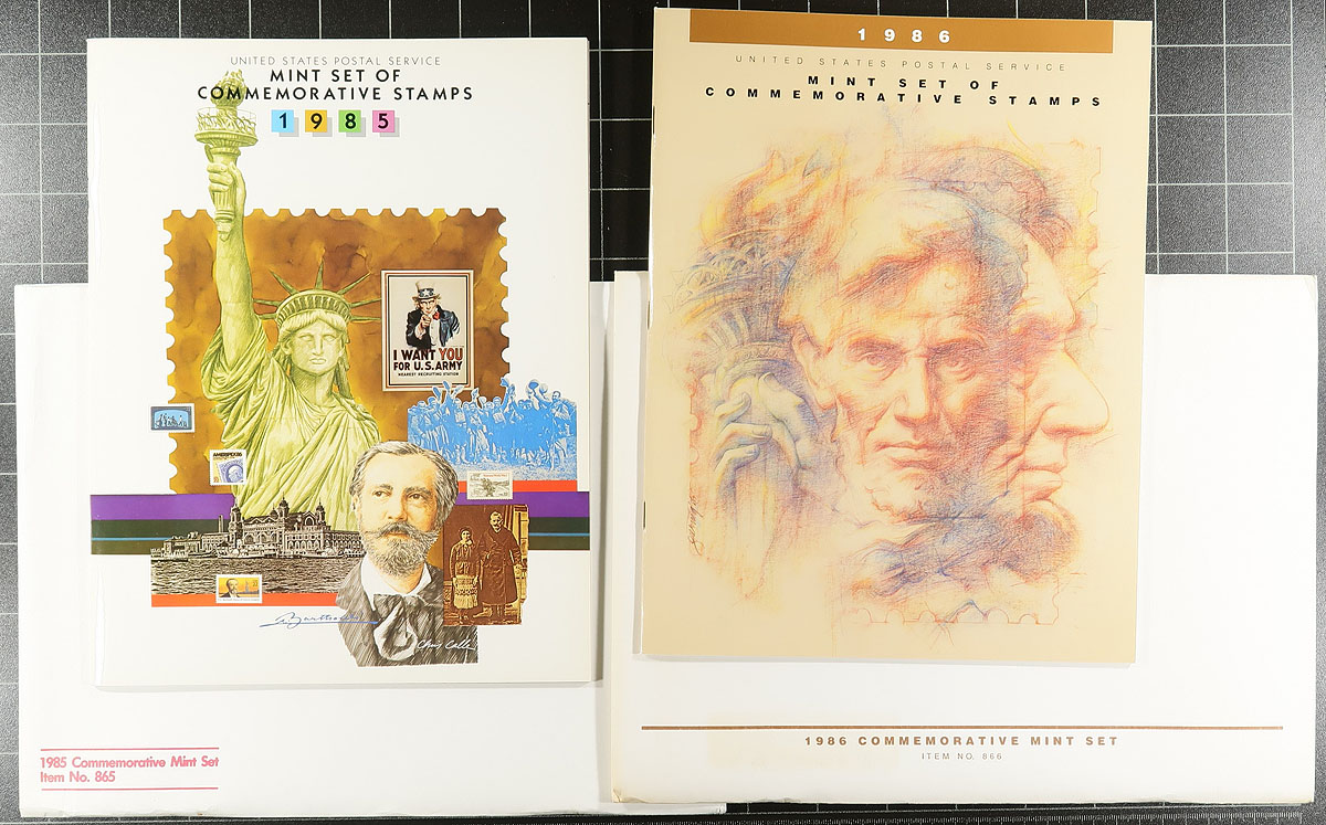 Annual Collections / Year Sets, plus extras! Complete (inclusive) run of Annual Collections / Year Sets booklets 1971-1987, all still in the original Post Office envelopes (including extra examples for 1979 x2 / 1980 x2 / 1987). In addition, there is a Post Office souvenir folder for the 1980 Winter Olympics and a small red stockbook, filled with an array of mint NH singles, blocks and coils. Counted only for the total face value / usable postage, but with none of the uneven postage (i.e. Transportation coils, 7.1c) or small selection of precancels or postage due stamps counted. Total face value US$209.74 ($283.20 CDN). Estimate =