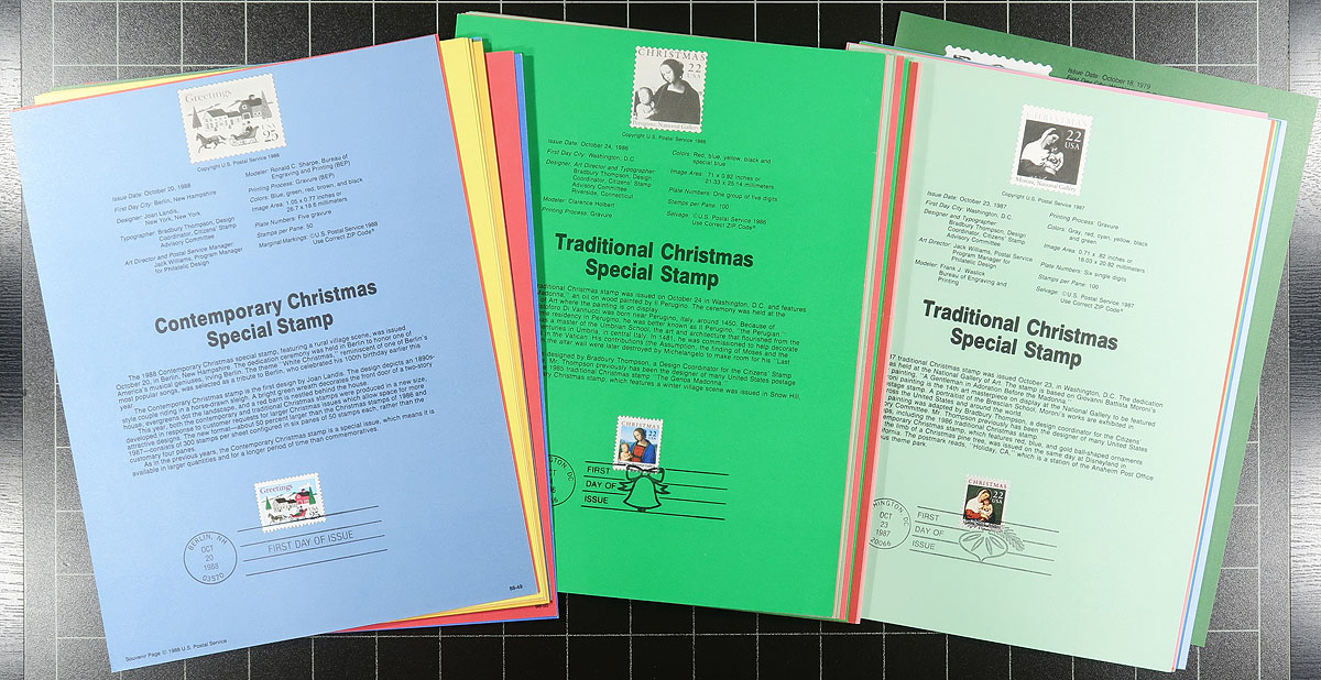 Commemorative Panels, a form of first day cover, but on a single page with stamp / first day cancel and a lengthy description about the issue. This group is 400 panels issued between 1977-1992 includes commemoratives, definitives, coils, booklet panes, airmails and officials. The collector organized these by subject, not chronologically, with one of the shortcomings of this method is that we don’t know how complete this run is. The overall condition is excellent, although someone hole punched about 20 of them to fit into binders, the rest are as issued. Listed in Scott US Specialized catalogue at between $1.50-$5.00 each. Great for topical collectors or as a way to expand your American First Day of Issue collection. Estimate =