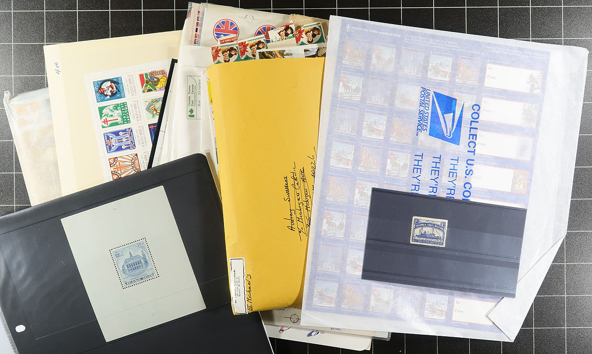 ESTATE HOARD. Bankers Box, filled with a cinderellas, labels, charity stamps, poster stamp HOARD. Mostly American, but with some Canadian (including French language) and even a Danish sheet. There are Christmas, Easter, BoysTown/Omaha/Starr Home for Boys, Wildlife Federation, Philatelic (noted a PIPEX ’49 complete sheet in the original envelope), CAPEX ’96 and Pacific ’97, Veterans of Foreign Wars, St. Jude’s Children’s Hospital, religious (including a promo letter "signed" by Roy Rogers and Dale Evans), a single "Columbia Coast Mission" seal and more. Most are complete panes or large blocks, filling three bursting binders and a DOZEN mint sheet files, plus some loose material. Besides the overwhelming quantity of seals, there is lots of supporting material, such as promotional letters, sleeves/packaging which adds to this lot. The range of years looks to be 1910-1999. Seldom offered in such quantity! Estimate =