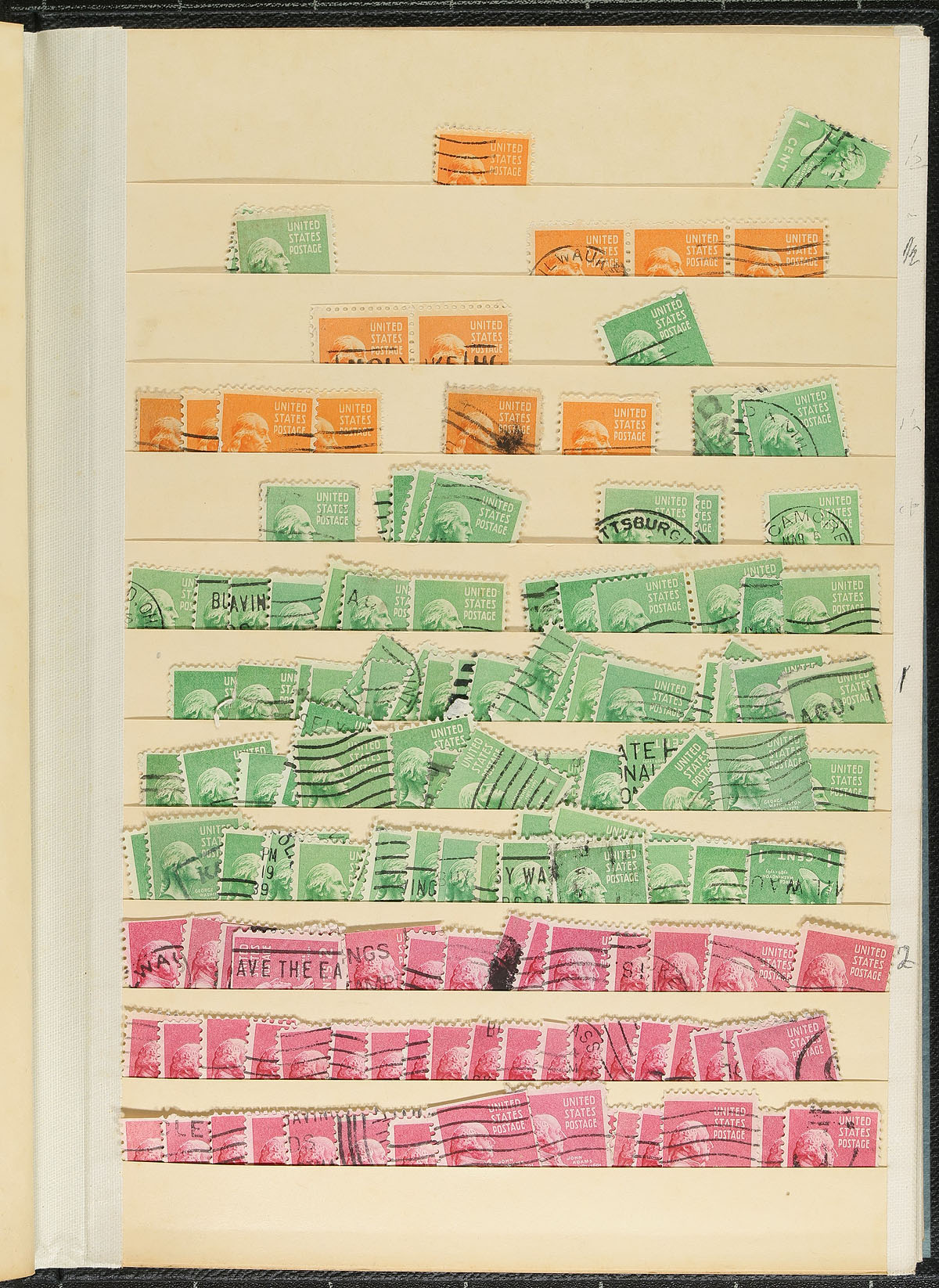 Bankers box crammed with a range of US material including three binders with stamps, blocks and cancels. Noted a couple hundred uncacheted FDCs and cacheted event covers from the 1950’s-1970’s, including a binder with about 25 Hummel Christmas themed covers, with winter or Christmas themed cancels on nice cachets (original cost would have been significant). While most of the stamps are used, we did notice about US$40.00 of modern postage from the 33c era. Every remaining space in the box is filled with envelopes and baggies filled with stamps. Estimate =