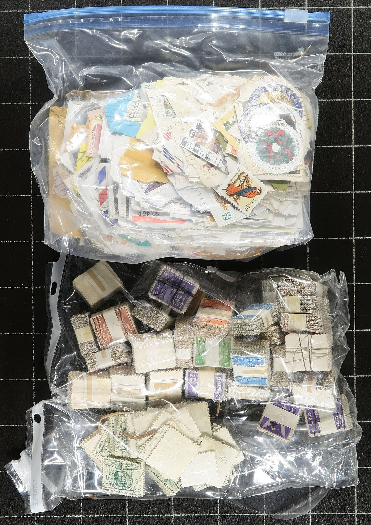 Bankers box crammed with a range of US material including three binders with stamps, blocks and cancels. Noted a couple hundred uncacheted FDCs and cacheted event covers from the 1950’s-1970’s, including a binder with about 25 Hummel Christmas themed covers, with winter or Christmas themed cancels on nice cachets (original cost would have been significant). While most of the stamps are used, we did notice about US$40.00 of modern postage from the 33c era. Every remaining space in the box is filled with envelopes and baggies filled with stamps. Estimate =