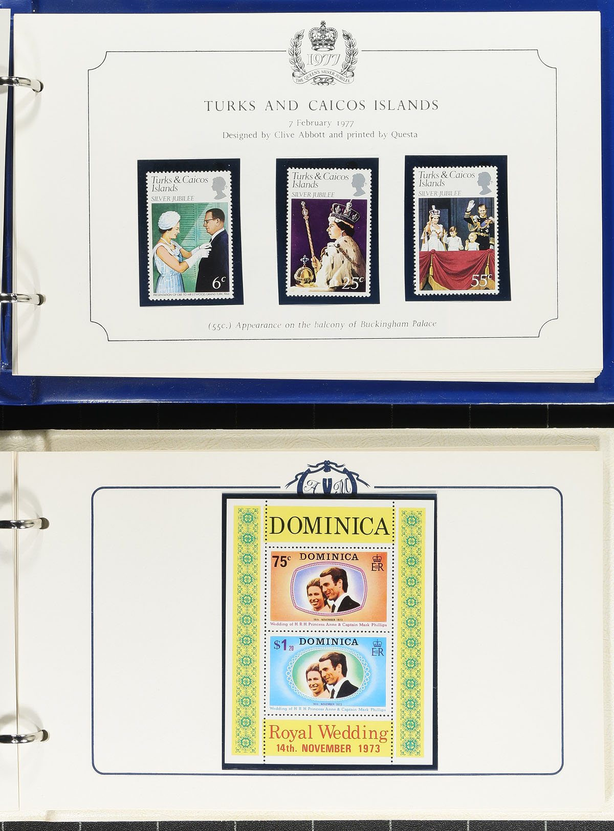 British Commonwealth "Royalty" Hoard. Small book box, filled with a wide variety of mostly mint material including singles, sets, albums, presentation booklets, souvenir editions, booklets, covers / postcards and souvenir sheets. A total of 332 single stamps, 18 first day covers / postcards, 35 souvenir sheets, 39 stamp booklets, 1 souvenir folder and 48 presentation packages (from various countries). Noted material from Great Britain, Jamaica, Jersey, Kiribati, Montserrat, Nevis, Tuvalu, Antigua, Barbuda, Aitutaki, St Lucia, St Vincent, Seychelles, Niue, Tanzania, Uganda, Dominica, Kenya, Anguilla, Grenada, Cook Islands, Grenadines, Ghana, Turks & Caicos, St. Kitts and Penrhyn. The lot would represent an astonishing original retail cost. Also included is a Stanley Gibbons Royal Wedding catalogue and stamp colour guide. Estimate =