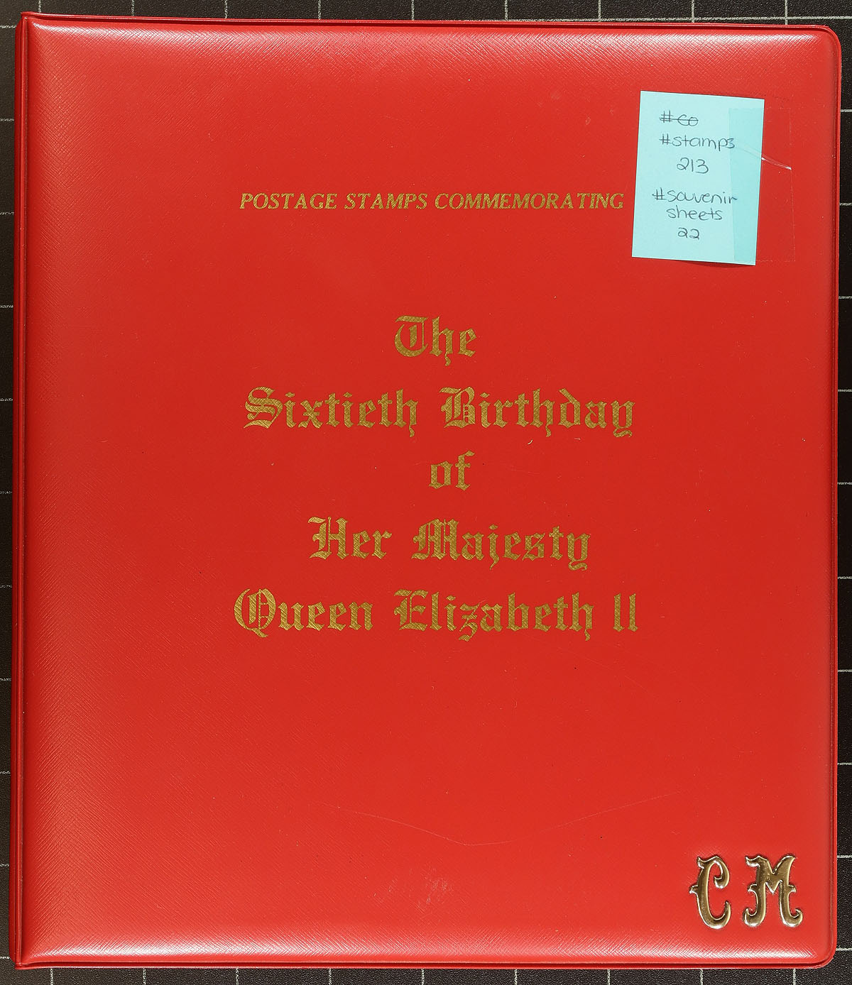 British Commonwealth "Royalty" Hoard. Small book box, filled with a wide variety of mostly mint material including singles, sets, albums, presentation booklets, souvenir editions, booklets, covers / postcards and souvenir sheets. A total of 332 single stamps, 18 first day covers / postcards, 35 souvenir sheets, 39 stamp booklets, 1 souvenir folder and 48 presentation packages (from various countries). Noted material from Great Britain, Jamaica, Jersey, Kiribati, Montserrat, Nevis, Tuvalu, Antigua, Barbuda, Aitutaki, St Lucia, St Vincent, Seychelles, Niue, Tanzania, Uganda, Dominica, Kenya, Anguilla, Grenada, Cook Islands, Grenadines, Ghana, Turks & Caicos, St. Kitts and Penrhyn. The lot would represent an astonishing original retail cost. Also included is a Stanley Gibbons Royal Wedding catalogue and stamp colour guide. Estimate =