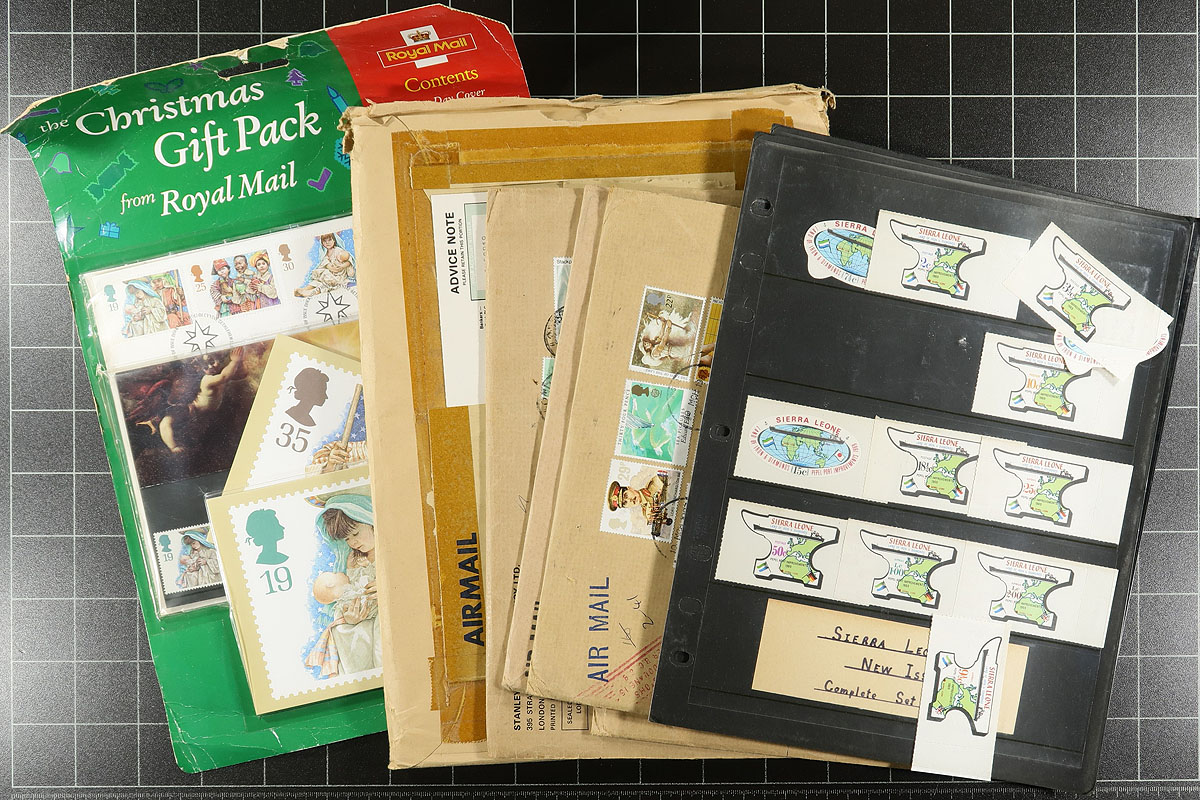 British Commonwealth "Royalty" Hoard. Small book box, filled with a wide variety of mostly mint material including singles, sets, albums, presentation booklets, souvenir editions, booklets, covers / postcards and souvenir sheets. A total of 332 single stamps, 18 first day covers / postcards, 35 souvenir sheets, 39 stamp booklets, 1 souvenir folder and 48 presentation packages (from various countries). Noted material from Great Britain, Jamaica, Jersey, Kiribati, Montserrat, Nevis, Tuvalu, Antigua, Barbuda, Aitutaki, St Lucia, St Vincent, Seychelles, Niue, Tanzania, Uganda, Dominica, Kenya, Anguilla, Grenada, Cook Islands, Grenadines, Ghana, Turks & Caicos, St. Kitts and Penrhyn. The lot would represent an astonishing original retail cost. Also included is a Stanley Gibbons Royal Wedding catalogue and stamp colour guide. Estimate =