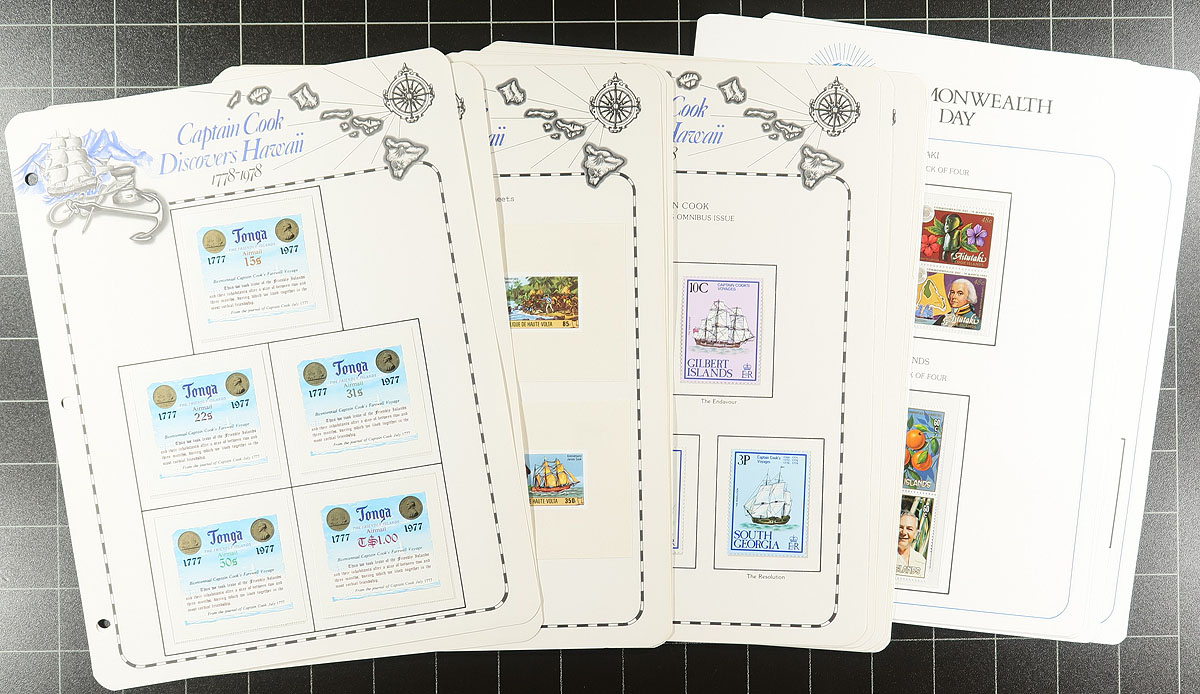 Collections of 1978 Captain Cook Bicentenary, 1981 Wedding of Prince Charles (sic) and 1983 Commonwealth Day issues on specialty White Ace album pages (with black mounts). Appears to be near (if not) complete with the stamps being in perfect condition. The Cook section consists of 201 stamps and 49 souvenir sheets, not surprisingly heavily tied to the countries that he travelled. Despite the "Prince Charles" title, it is actually Princess Diana that is featured in the second section with 162 stamps, 82 souvenir sheets and 5 booklets. The final chapter is the underappreciated holiday of Commonwealth Day, which was commemorated in 1983 with 216 stamps and 6 souvenir sheets. Be grateful that it wasn’t you who bought these as new issues as the initial cost would be immense. A total 578 stamps, 137 souvenir sheets and 5 booklets. Estimate =
